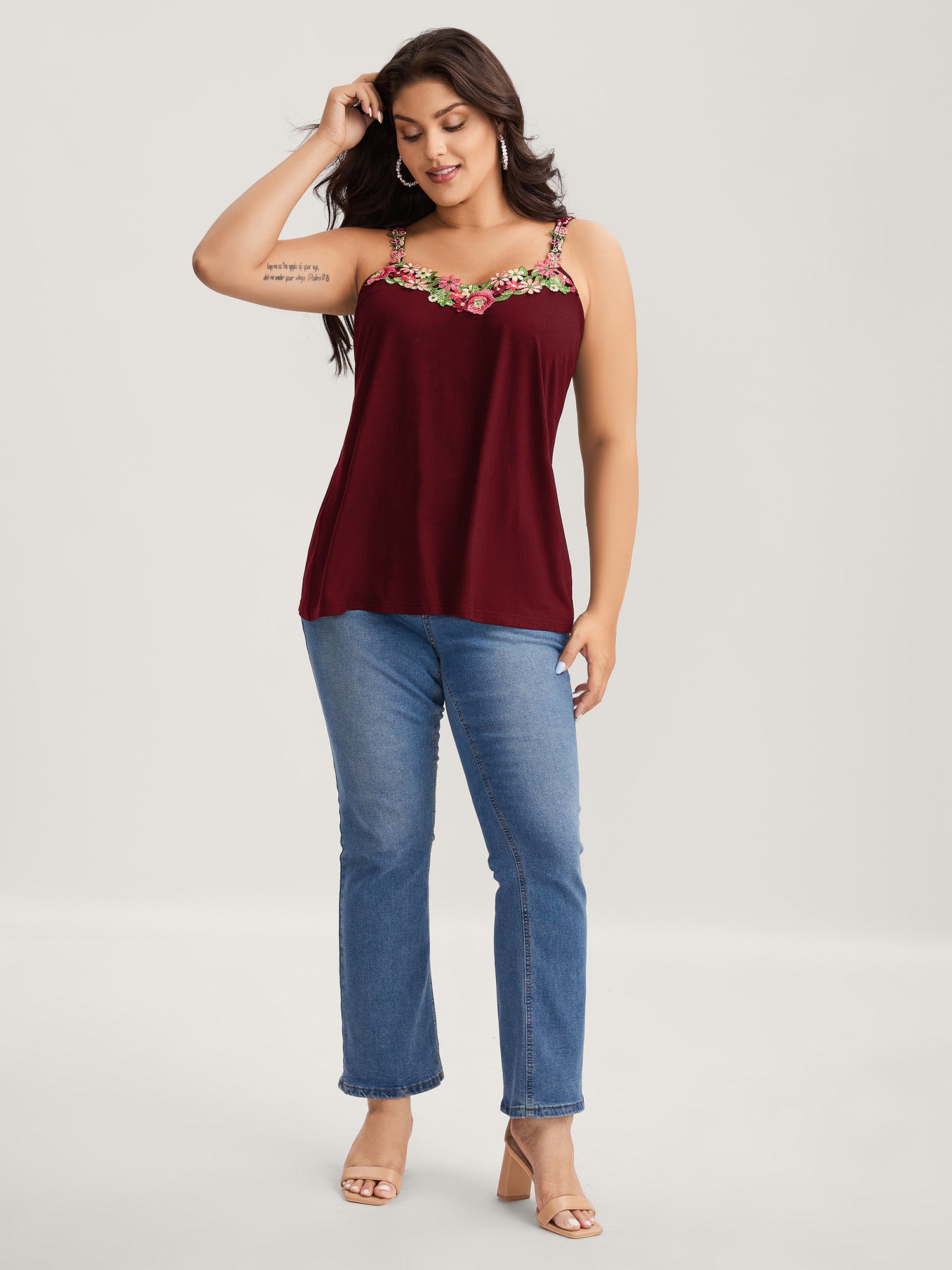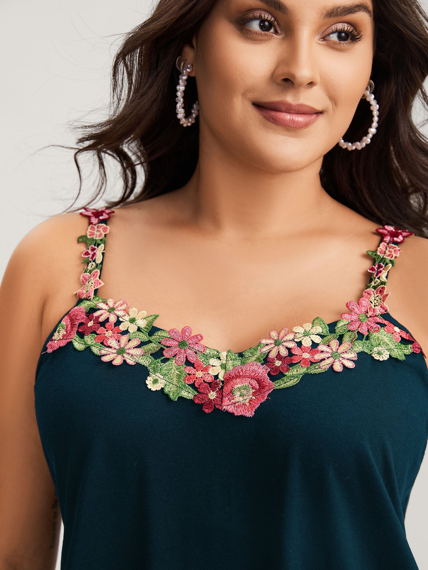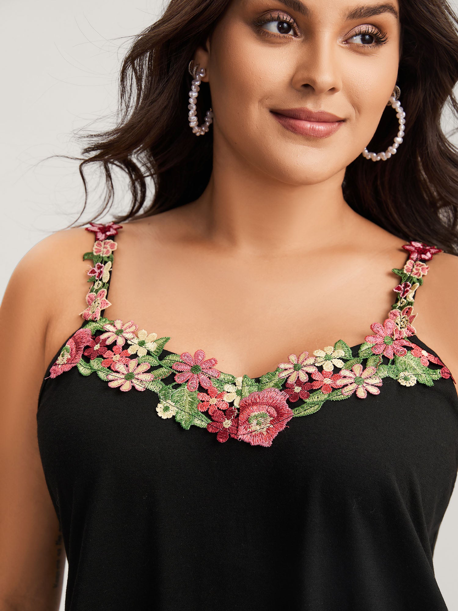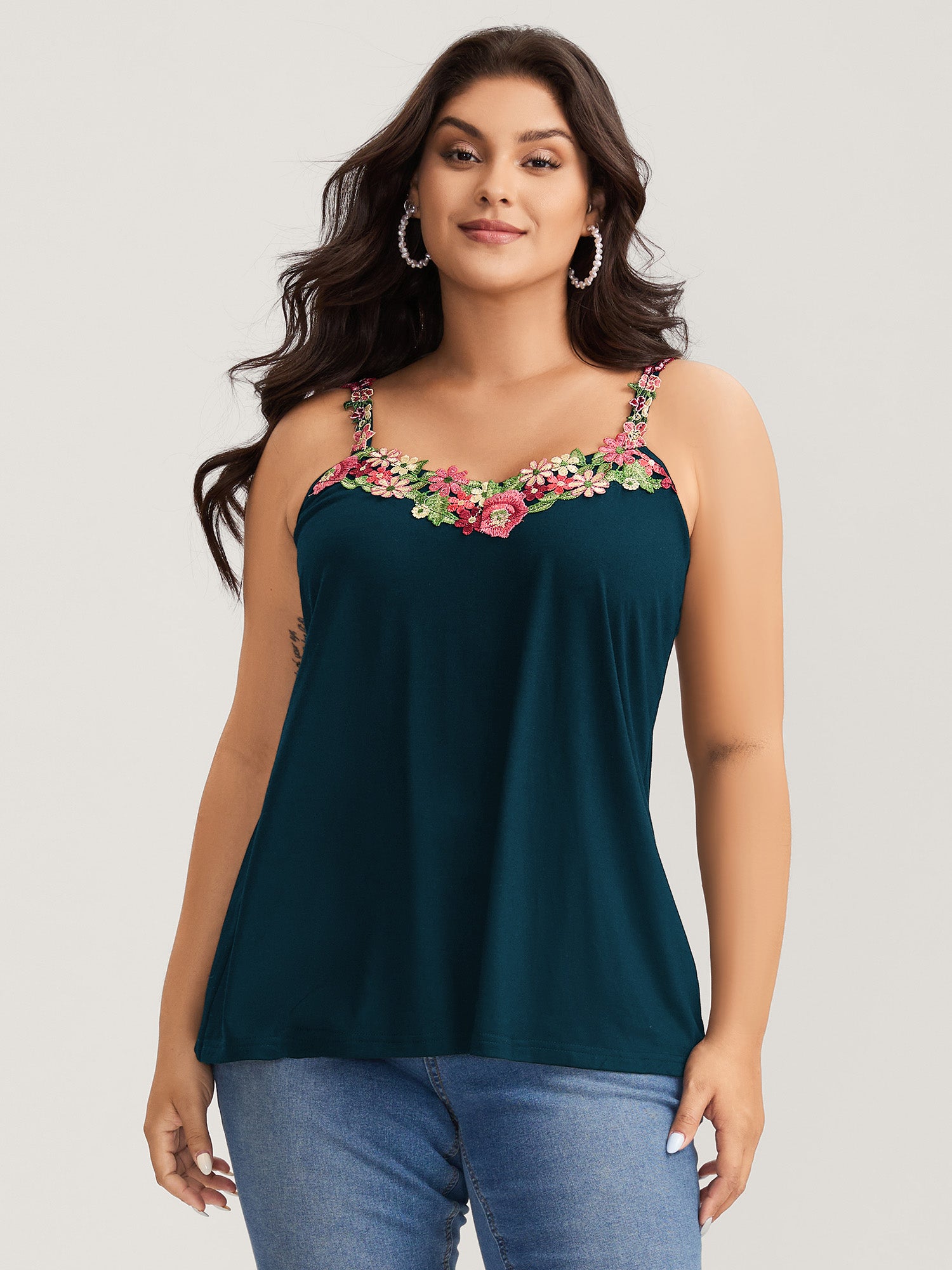 3D Floral Neckline Tank Top
