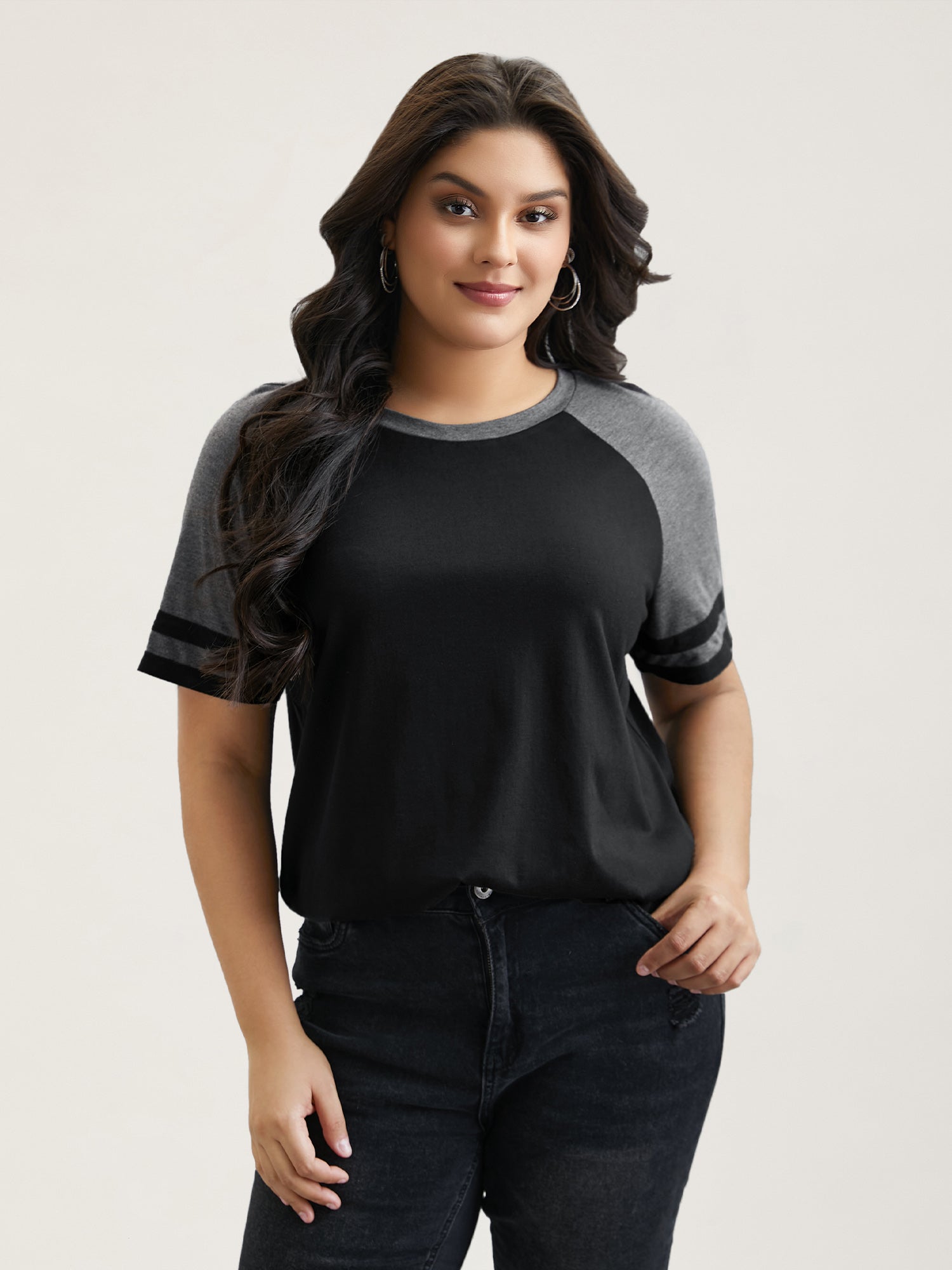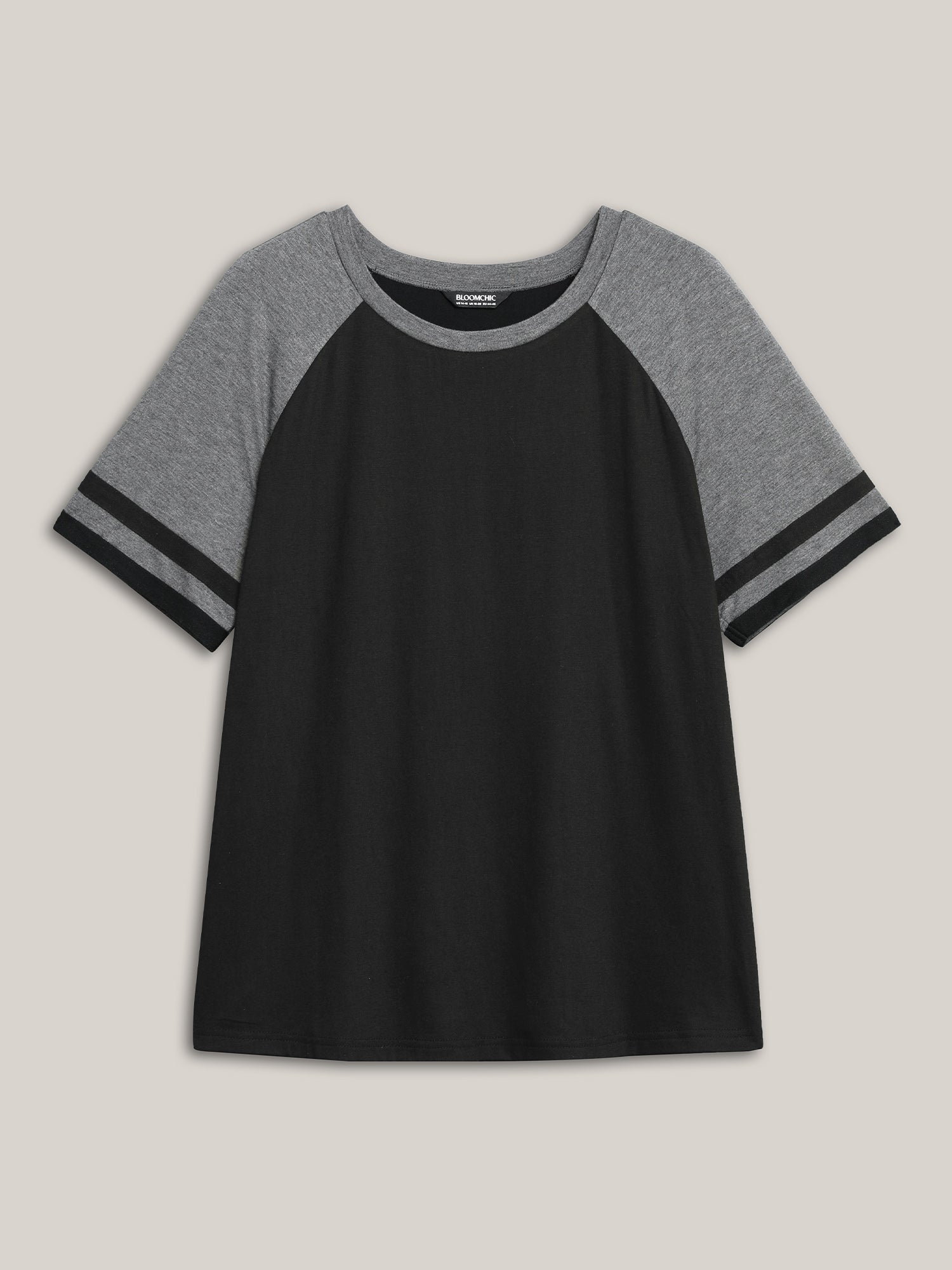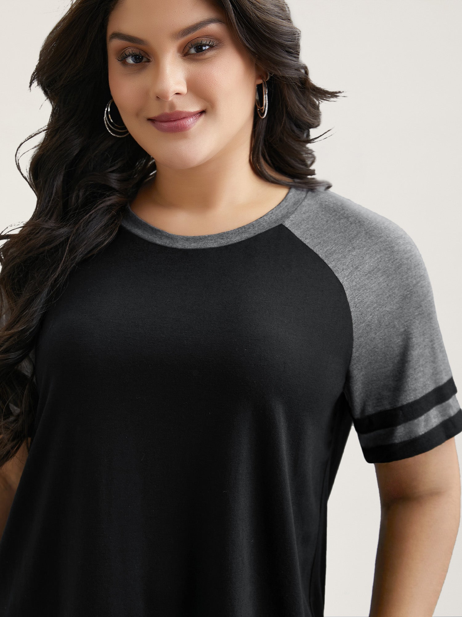 Color Block Stretchy Raglan Sleeve T-Shirt