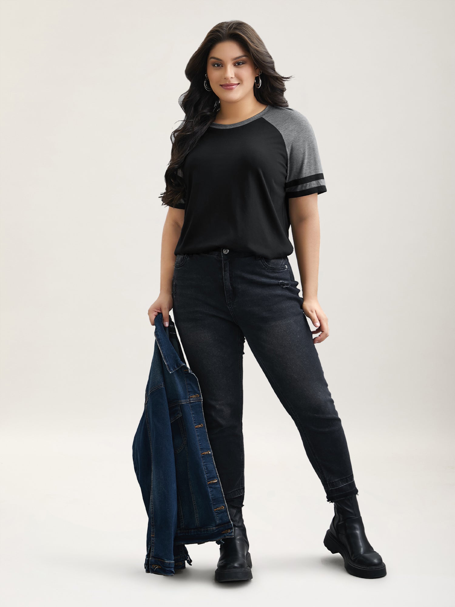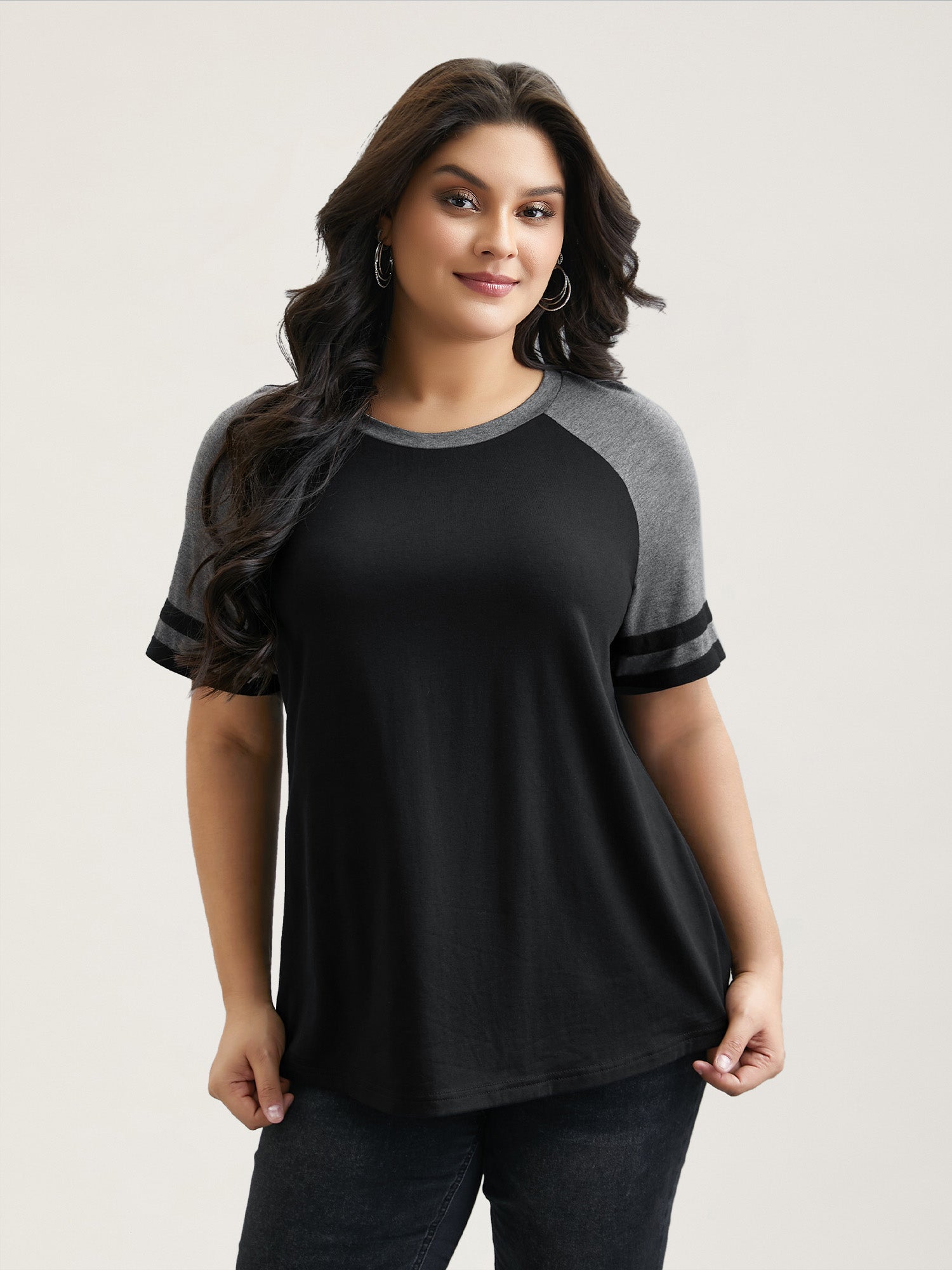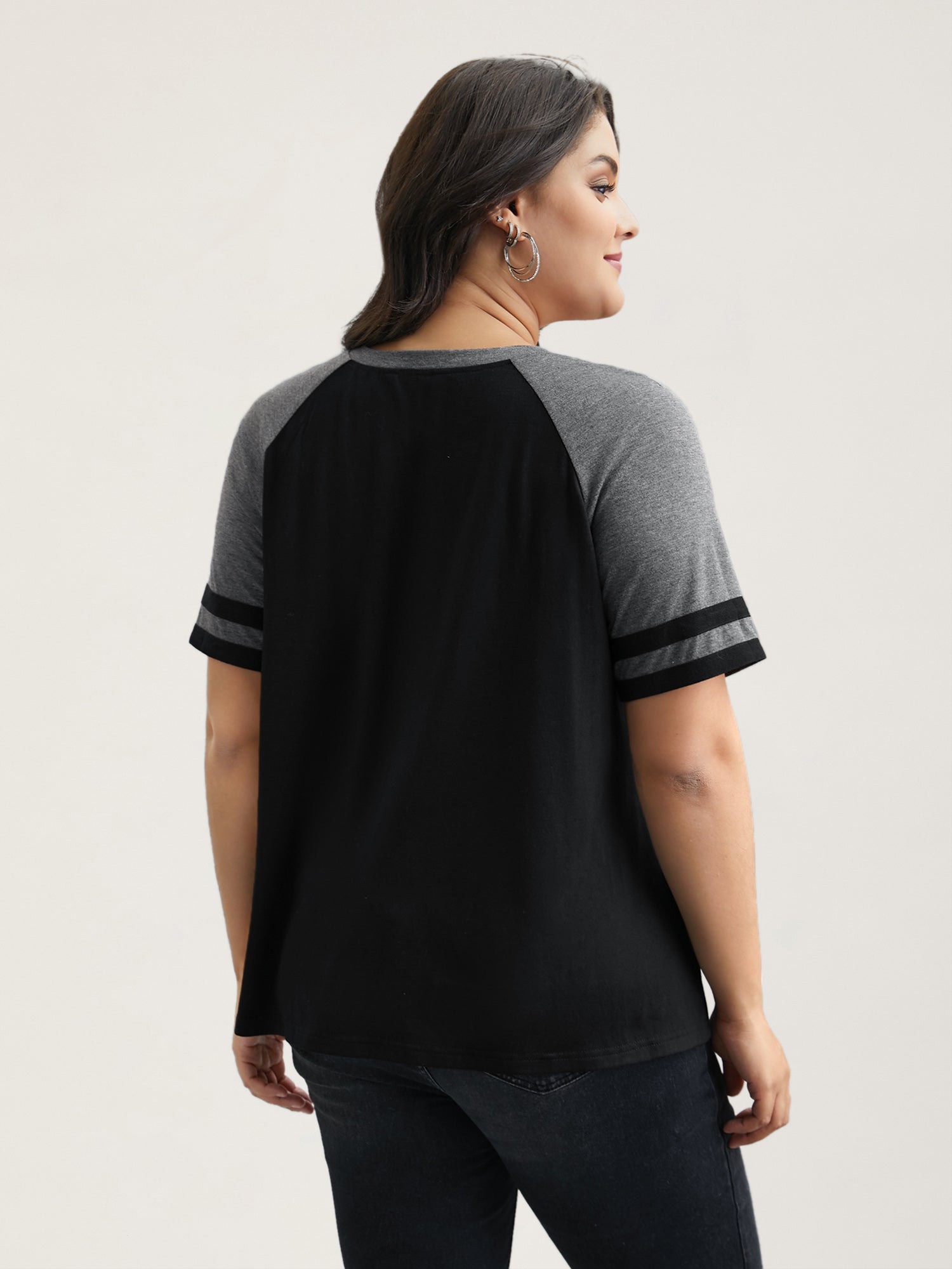 Color Block Stretchy Raglan Sleeve T-Shirt