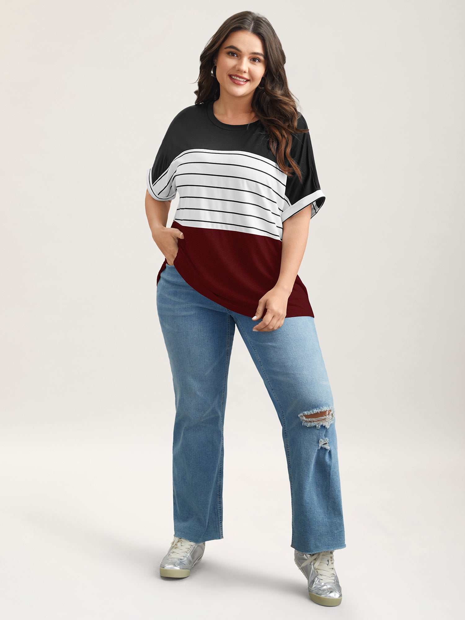 Color-Block Stretchy Stripes T-Shirt
