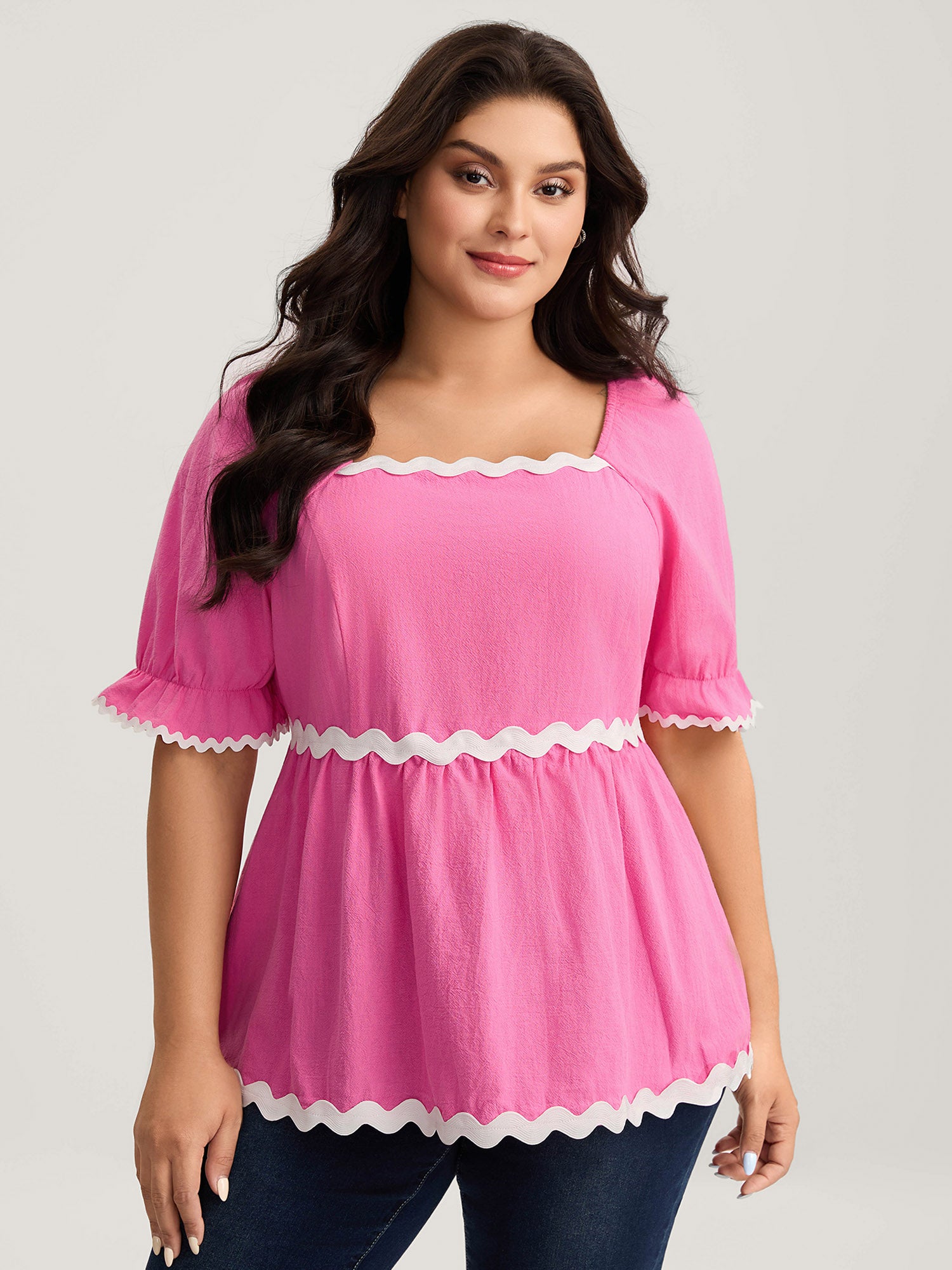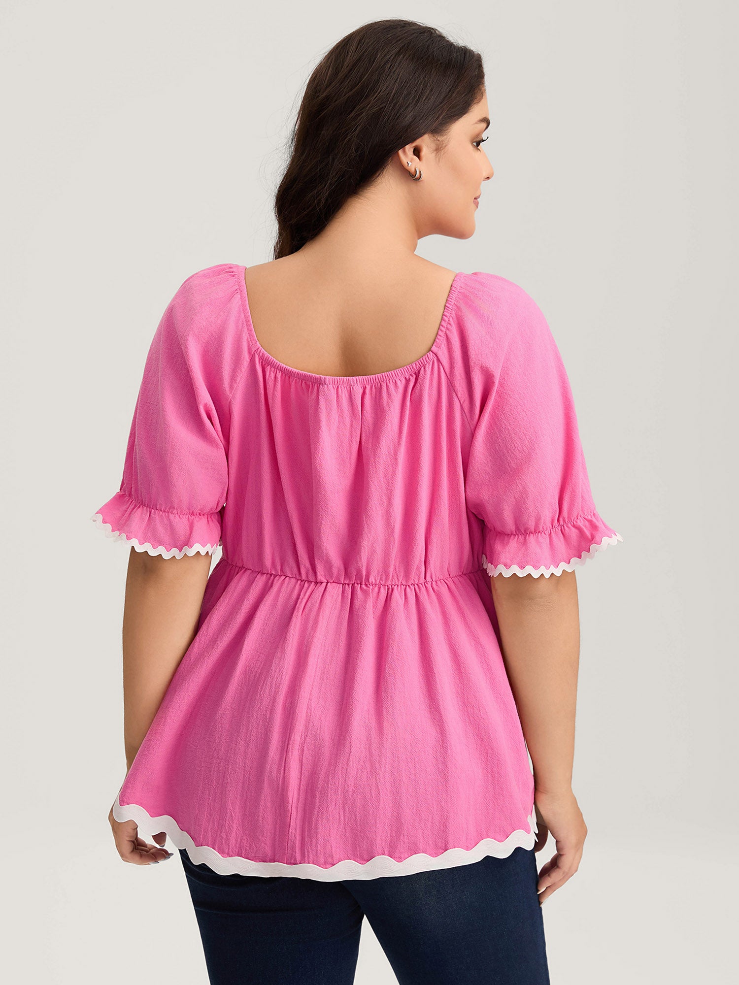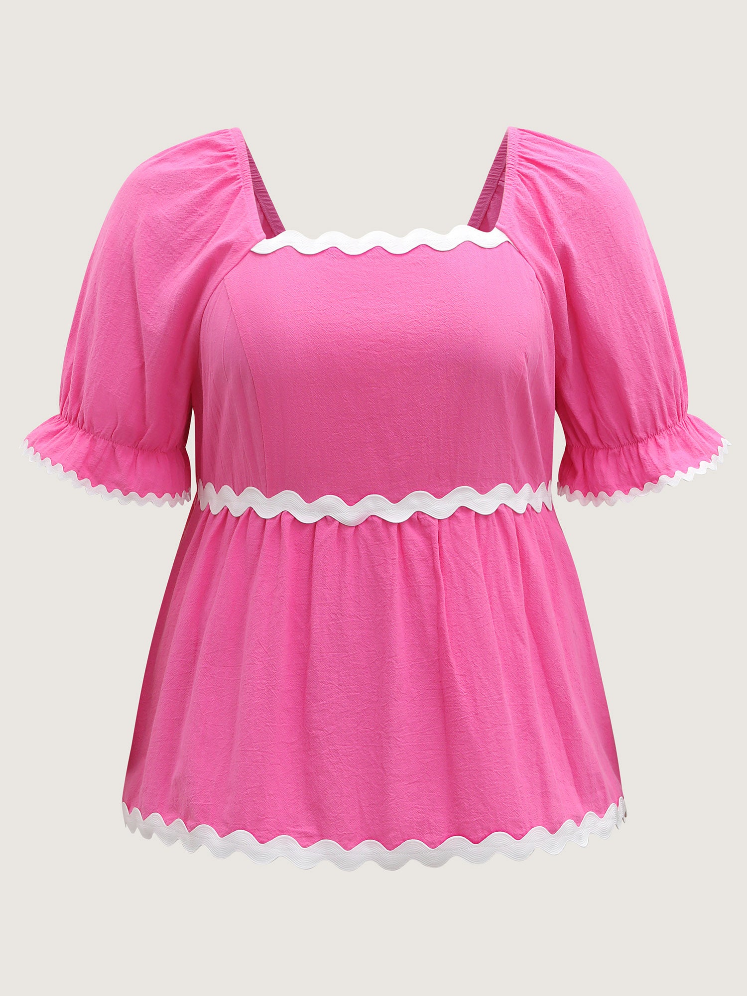 Cotton Contrast Webbed Square Neck Solid Blouse