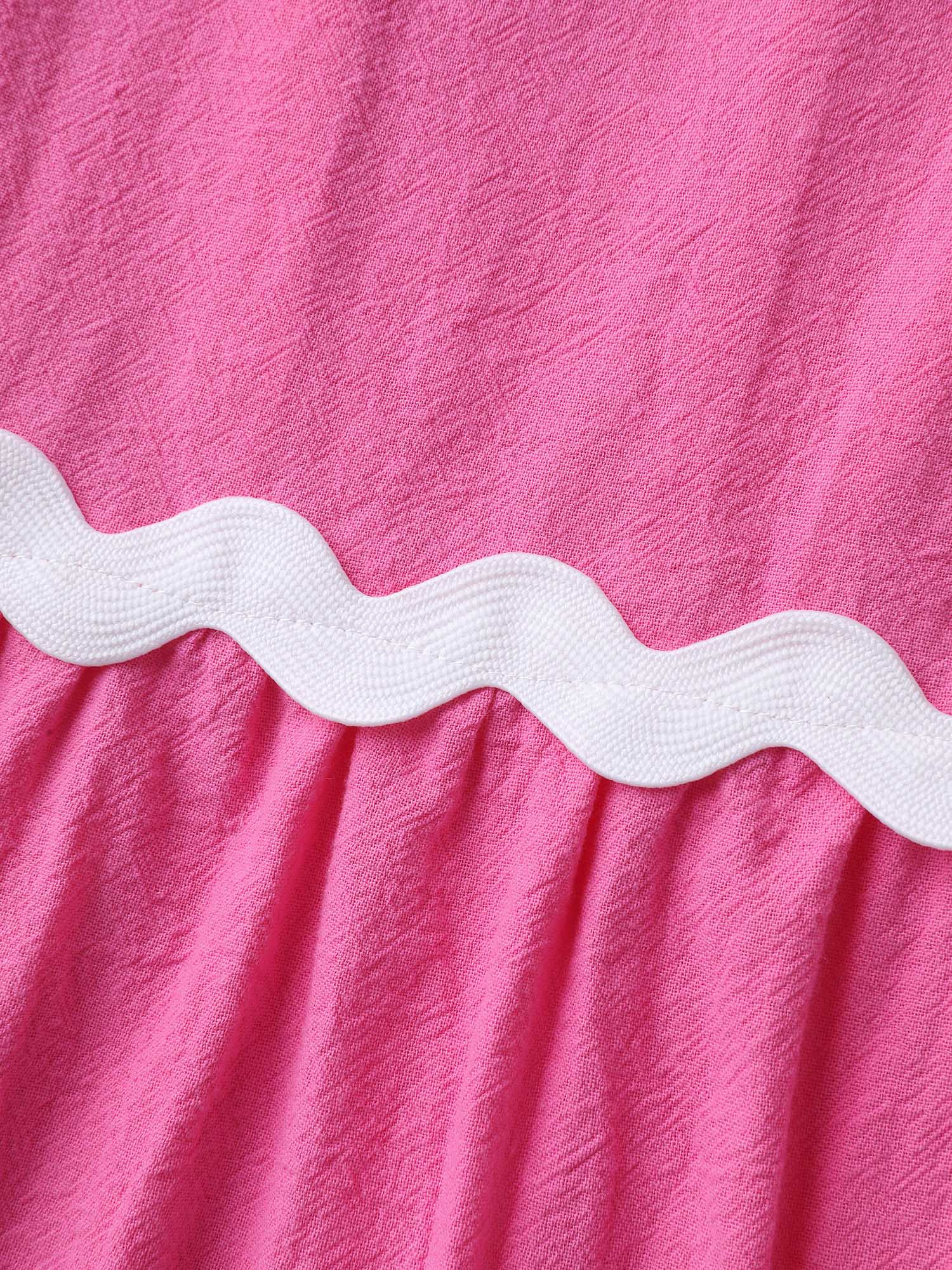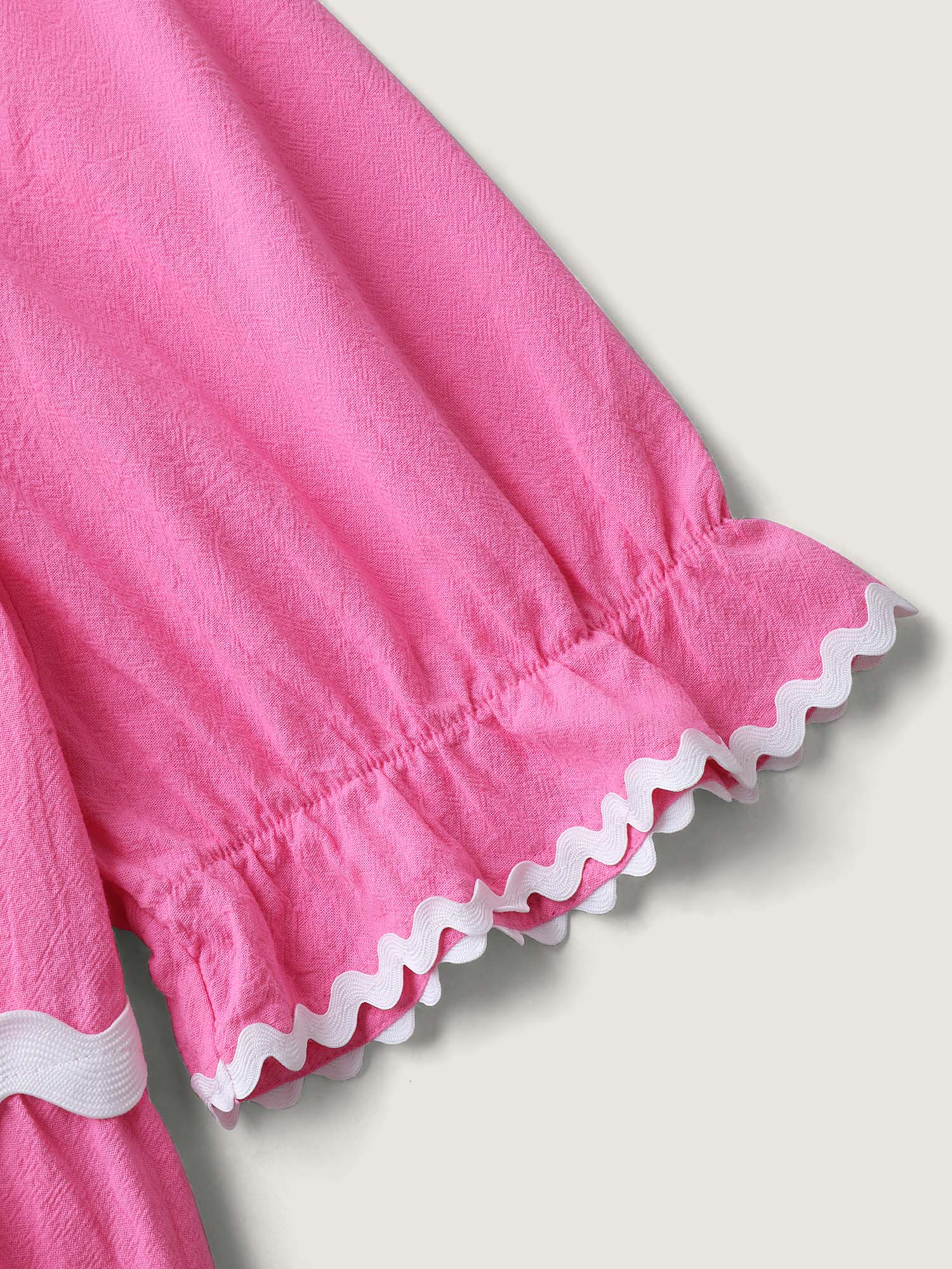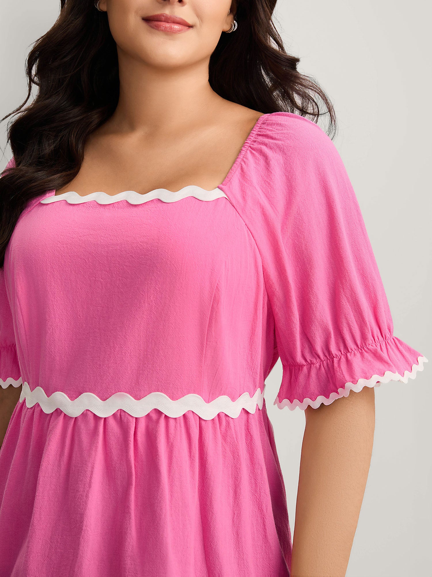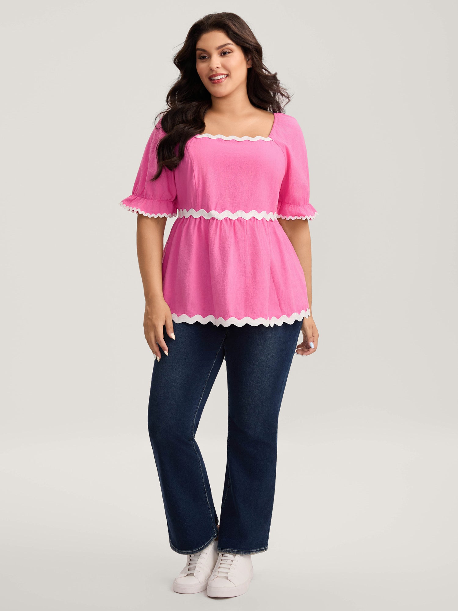 Cotton Contrast Webbed Square Neck Solid Blouse