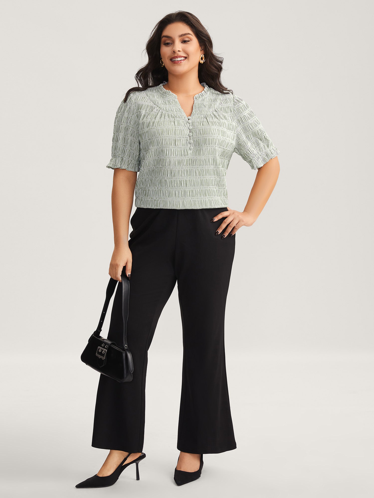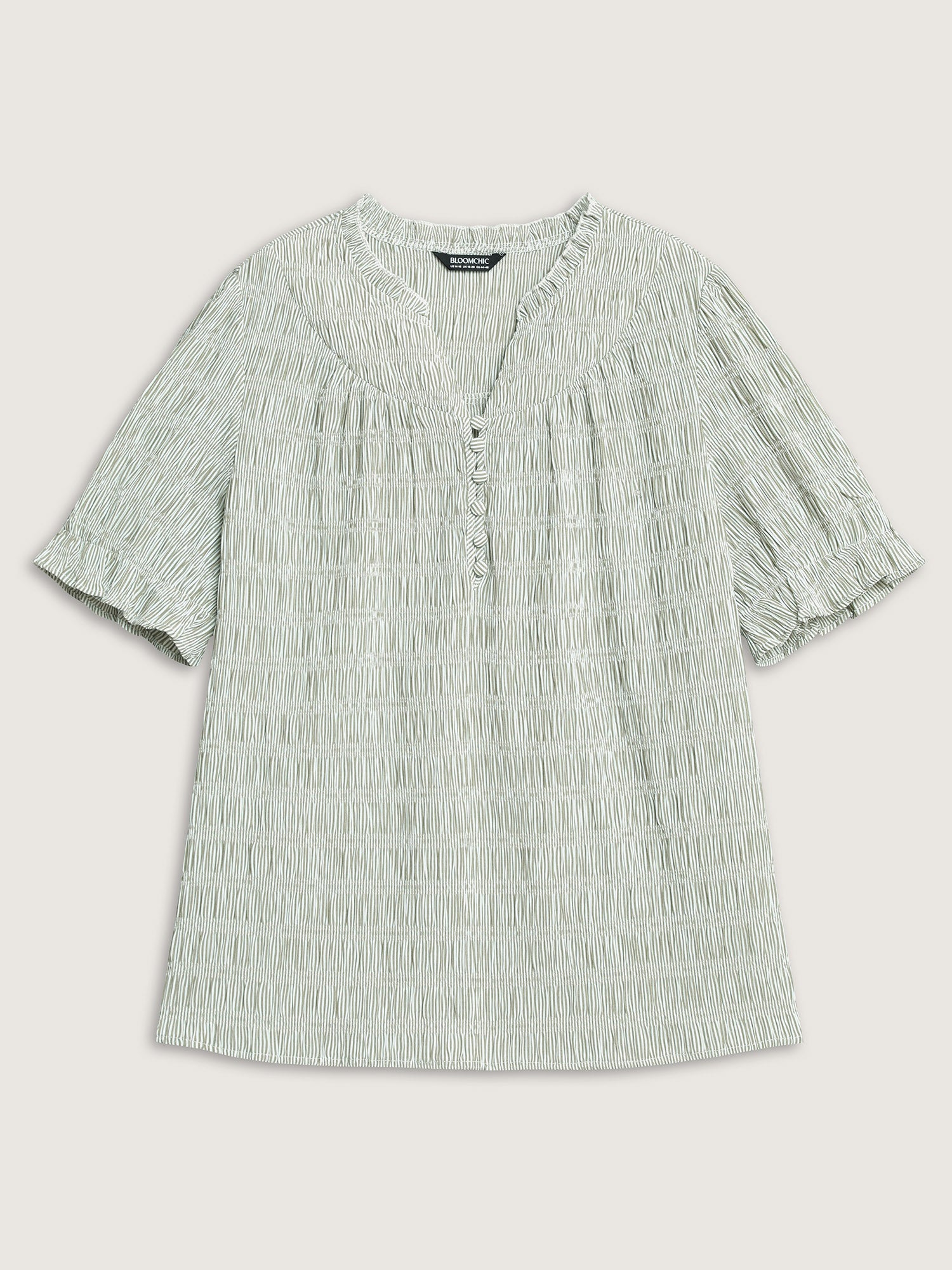 Cotton Half-Open Striped Solid Blouse