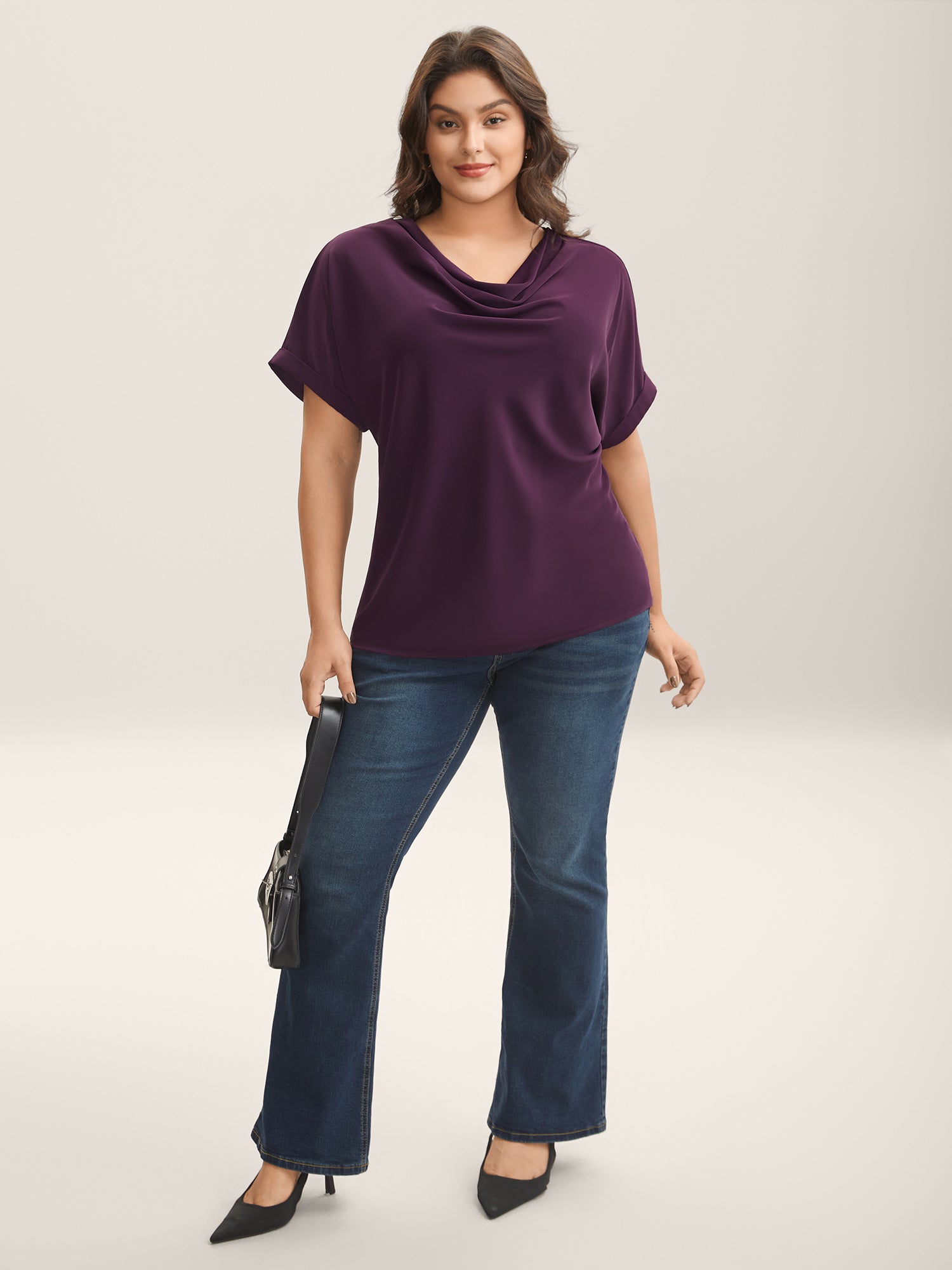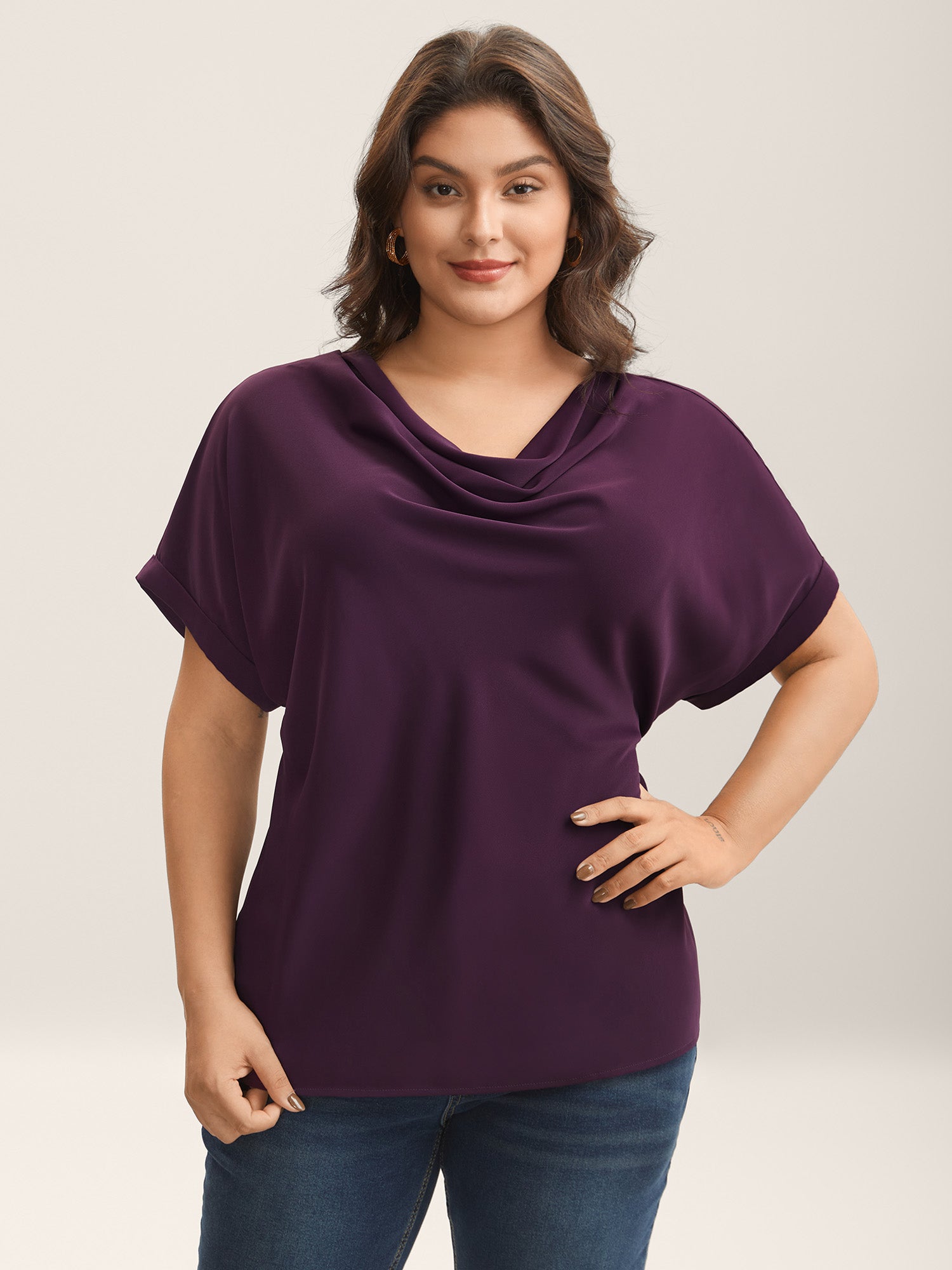 Cowl Neck Plain Dolman Sleeve Blouse