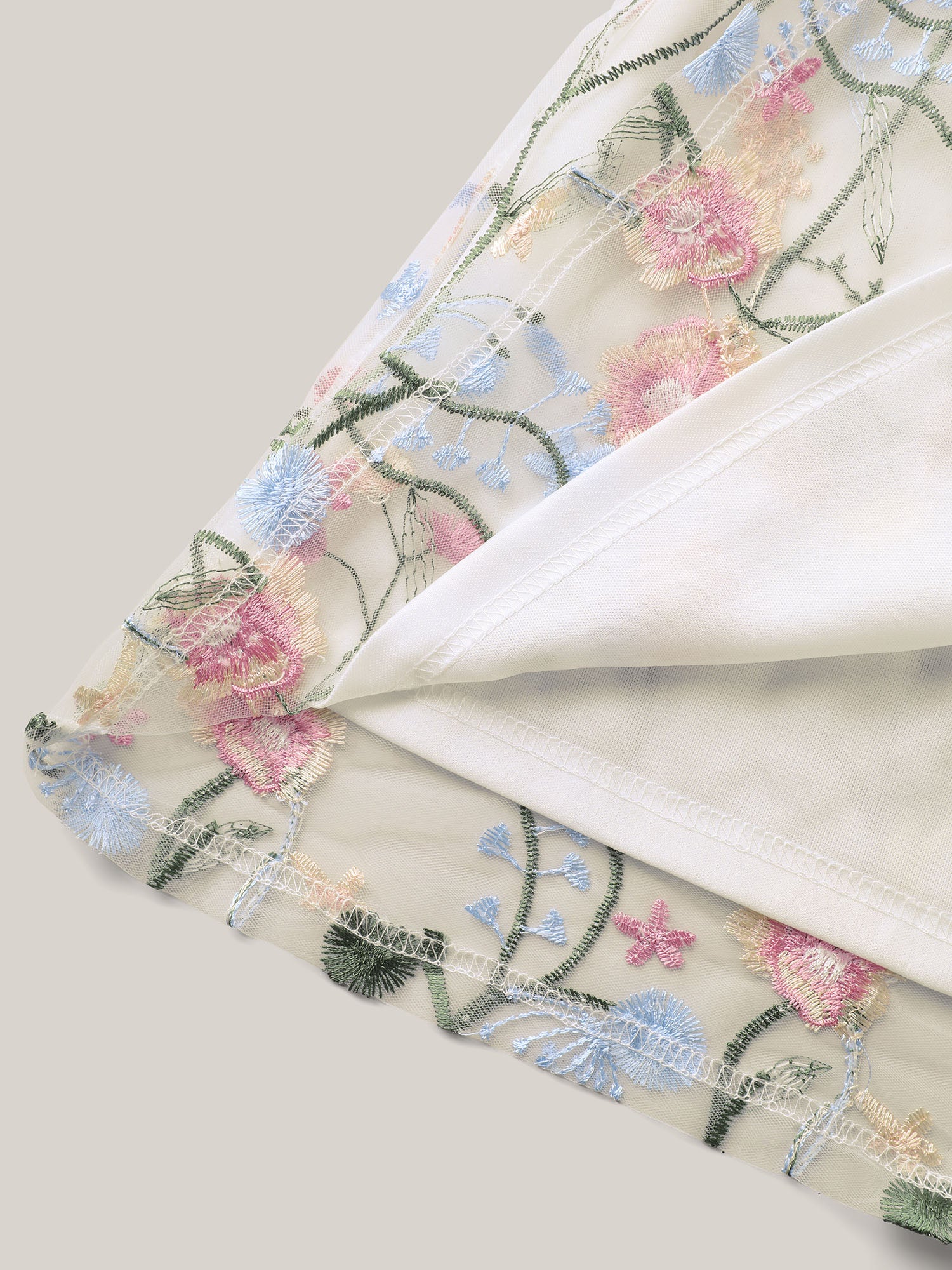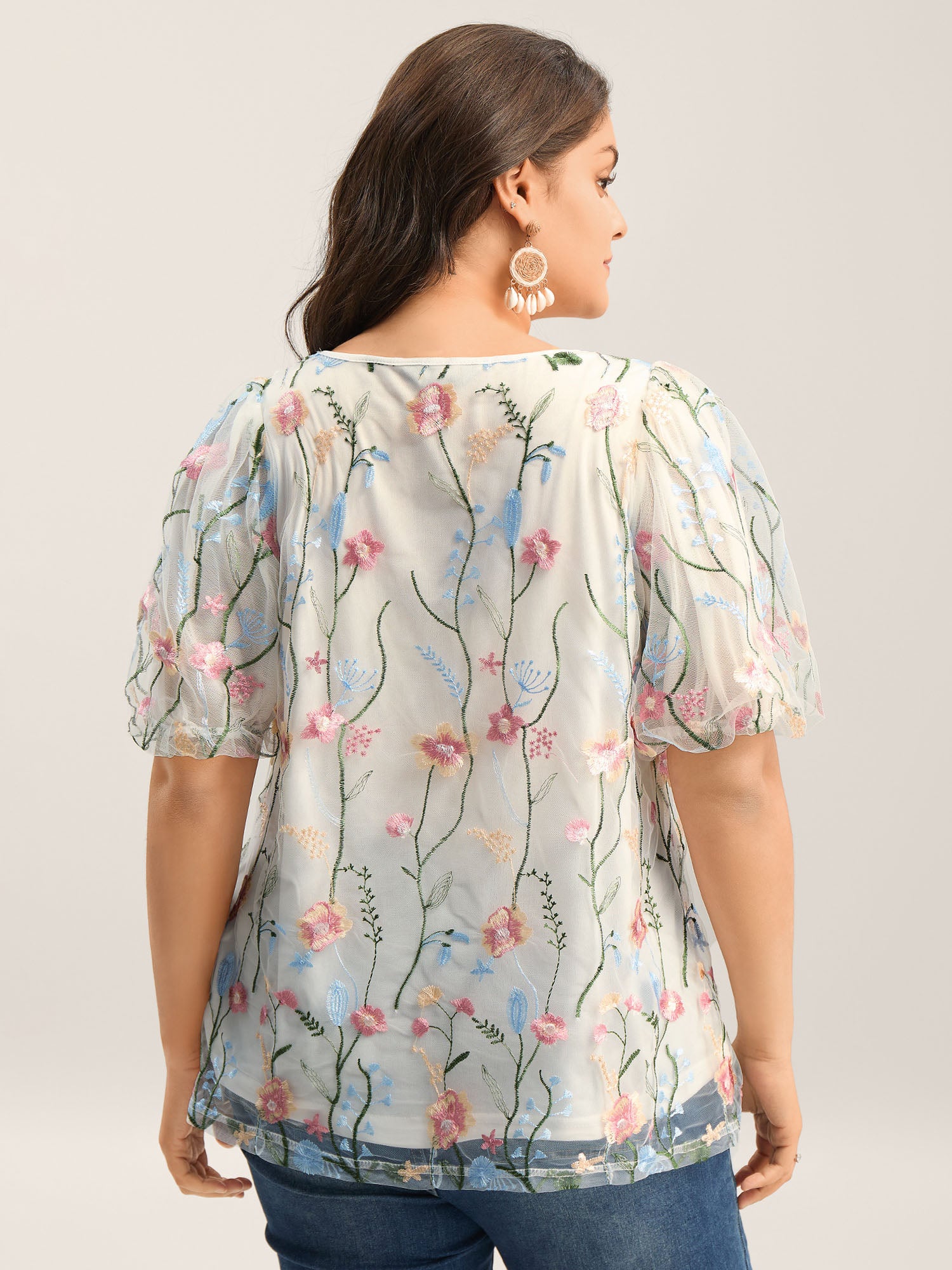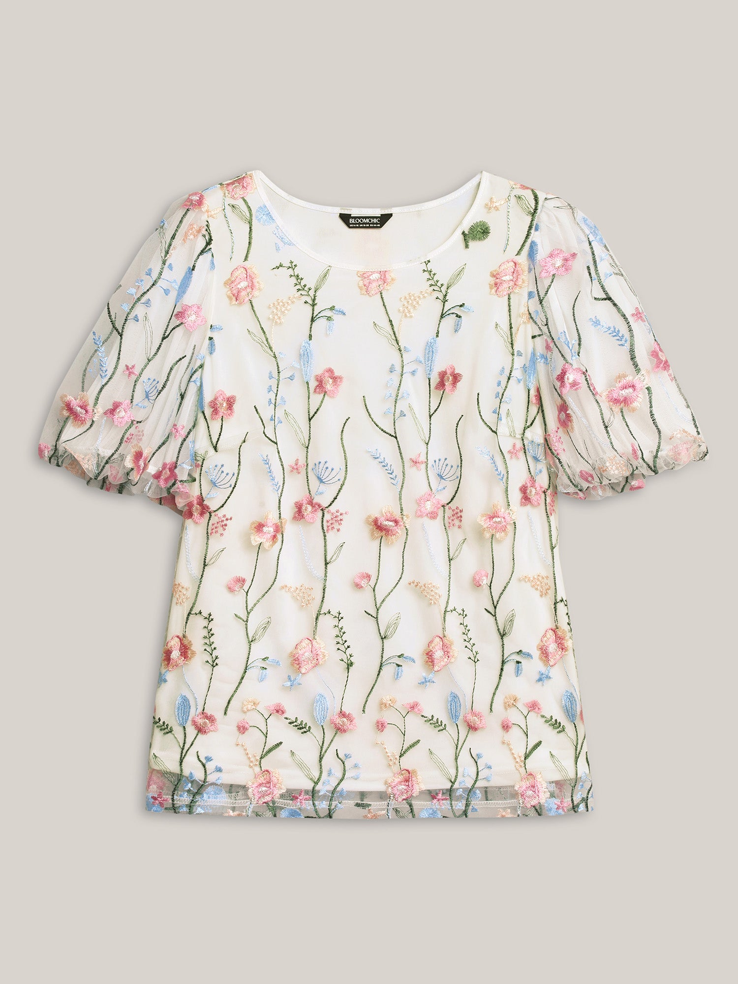 Floral Embroidered Mesh Bubble Sleeve Blouse