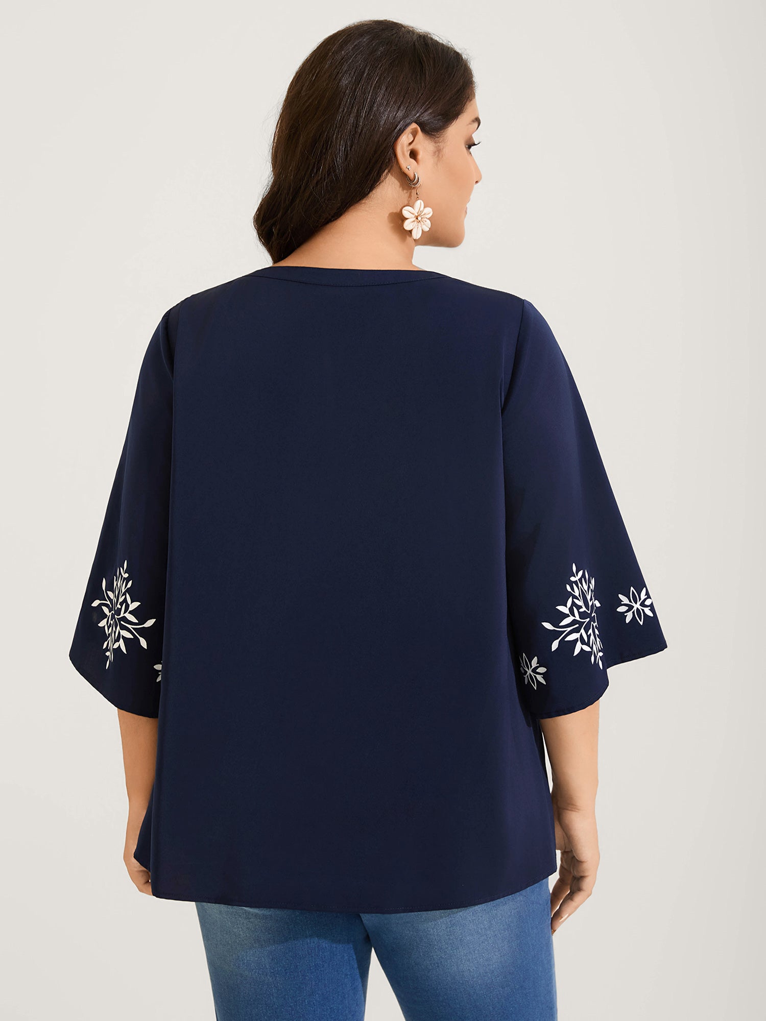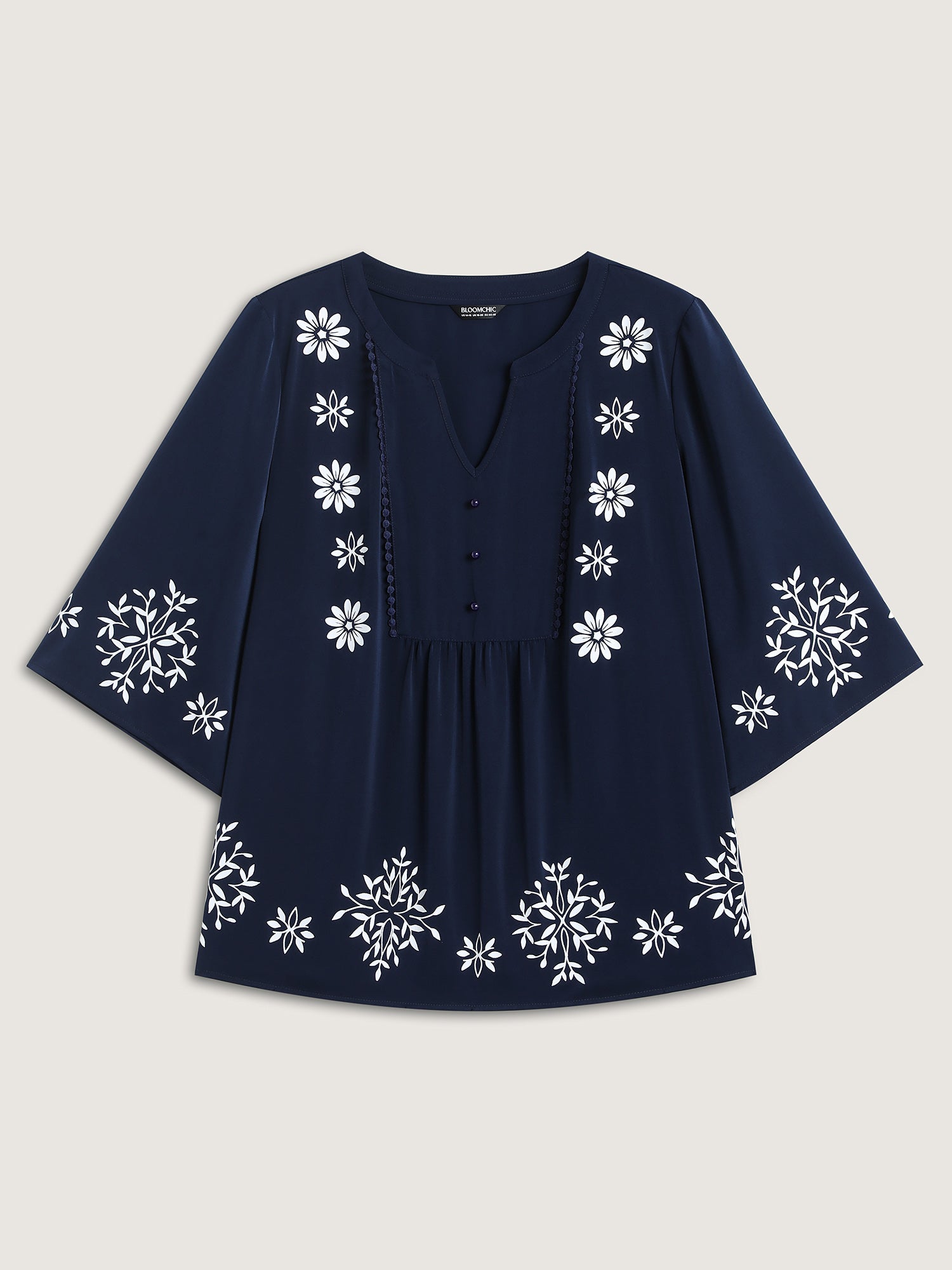 Floral Print Button Detail Solid Blouse