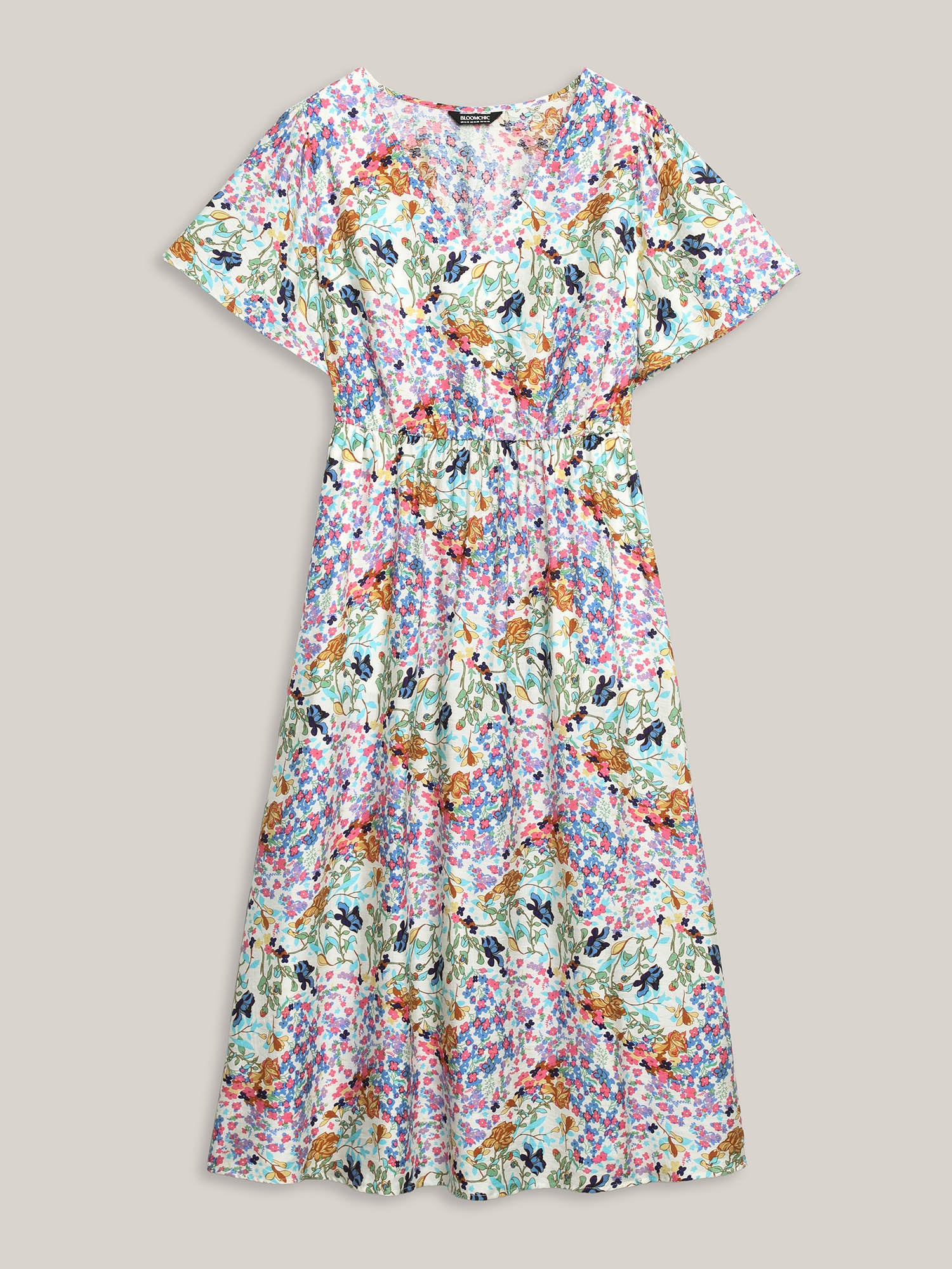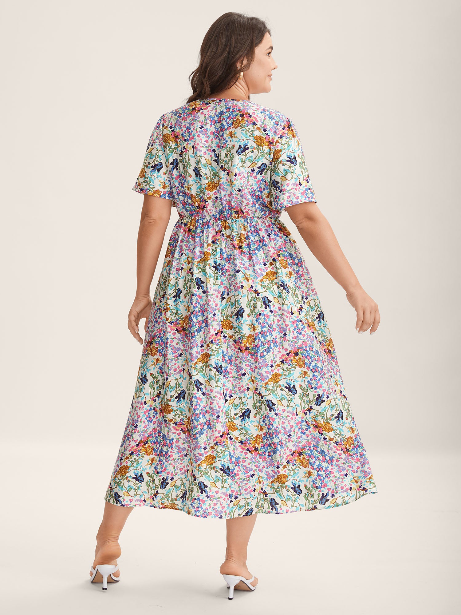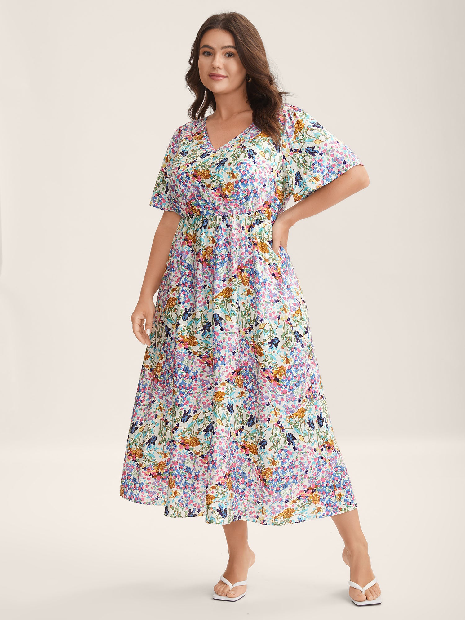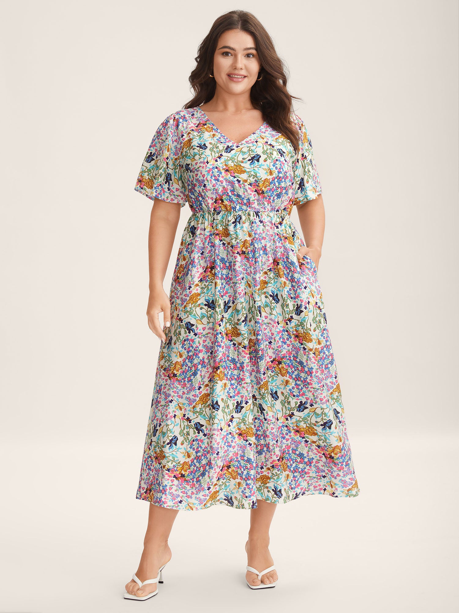 Floral Print Cinched-Waist Pockets Midi Dress