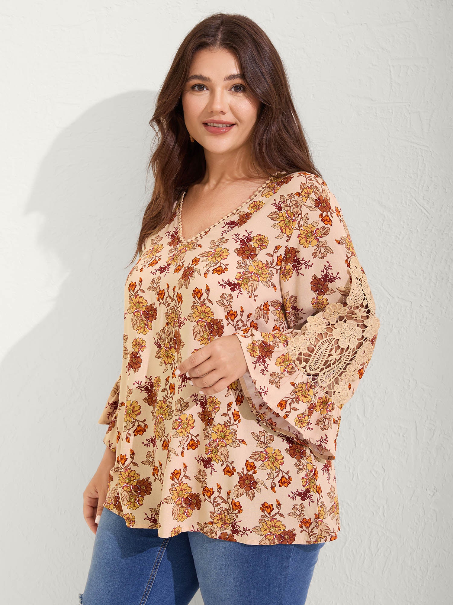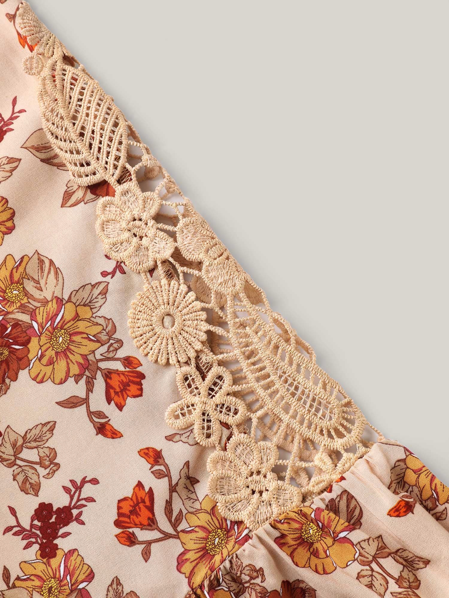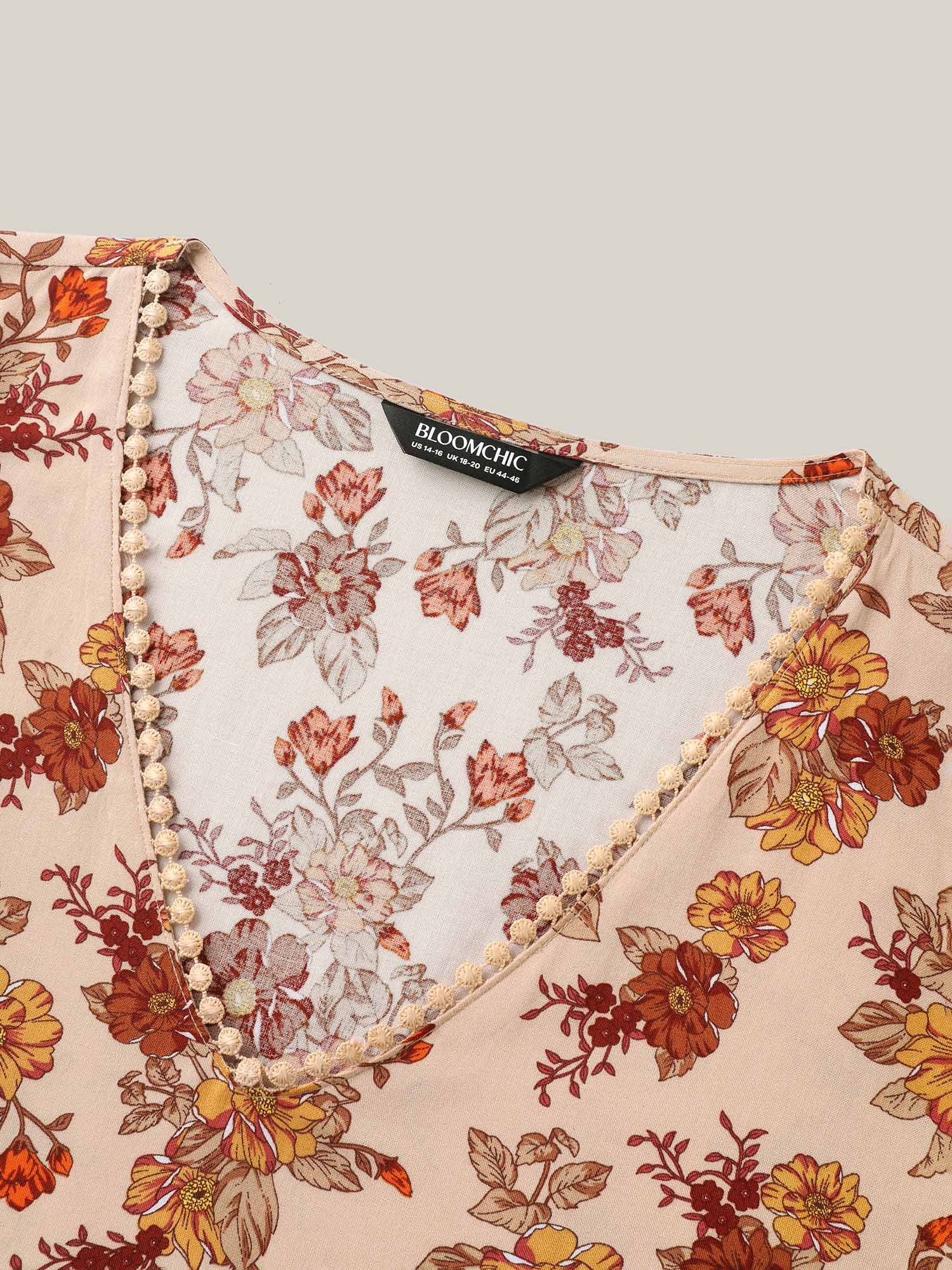 Floral Print Lace V-Neck Blouse