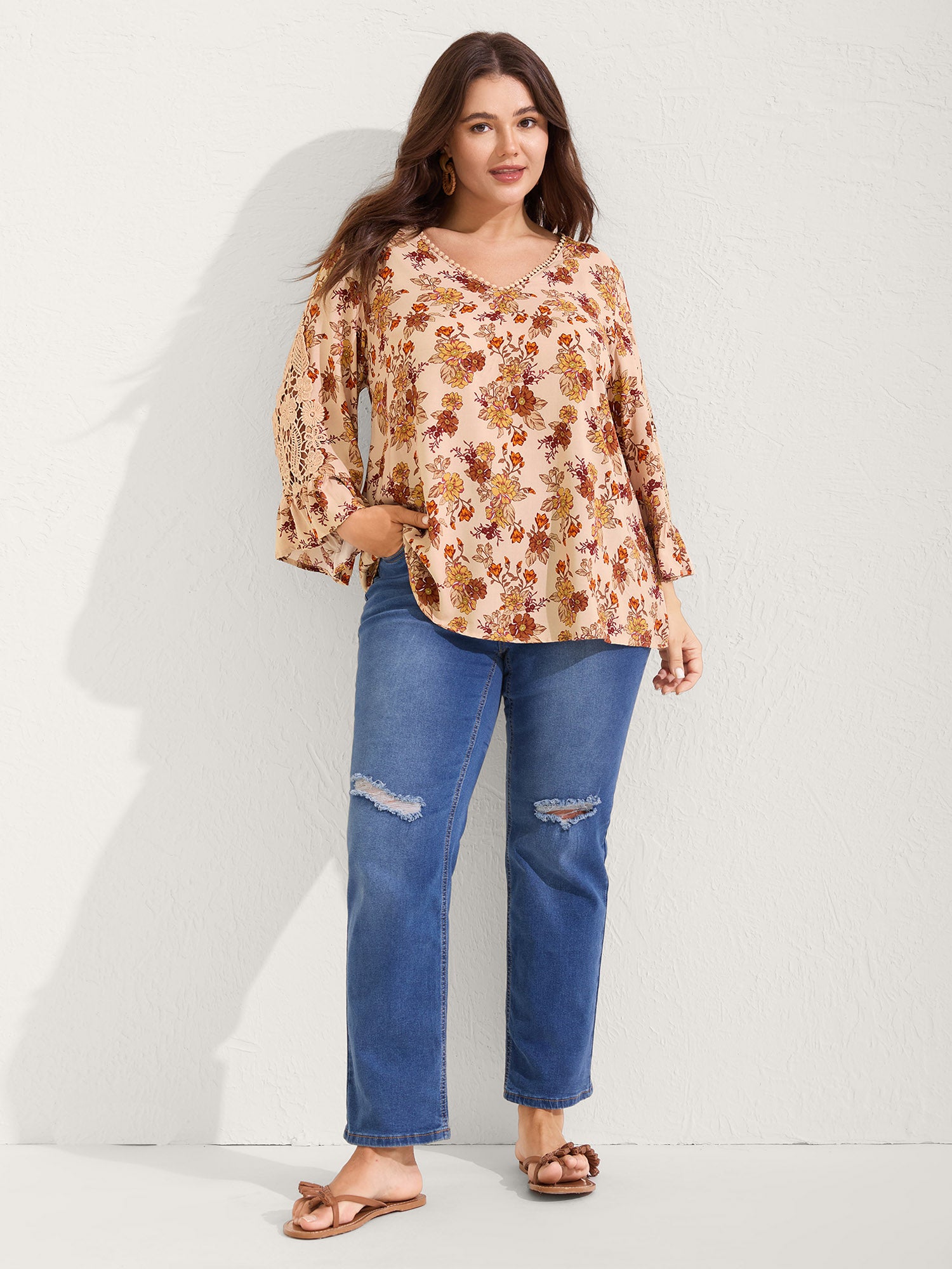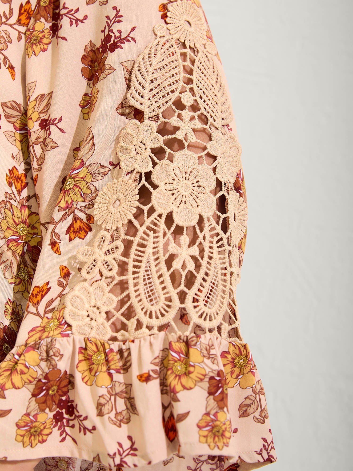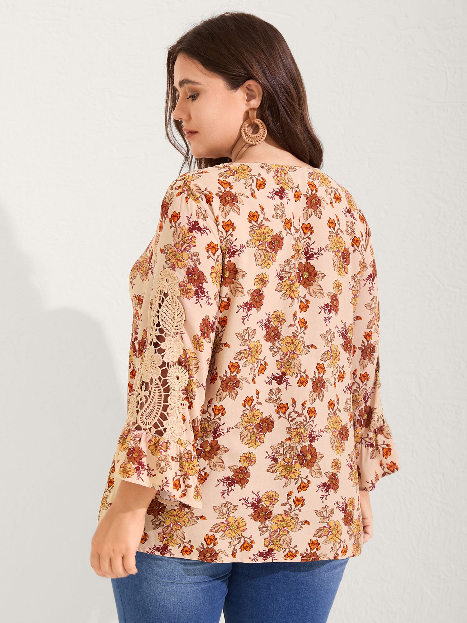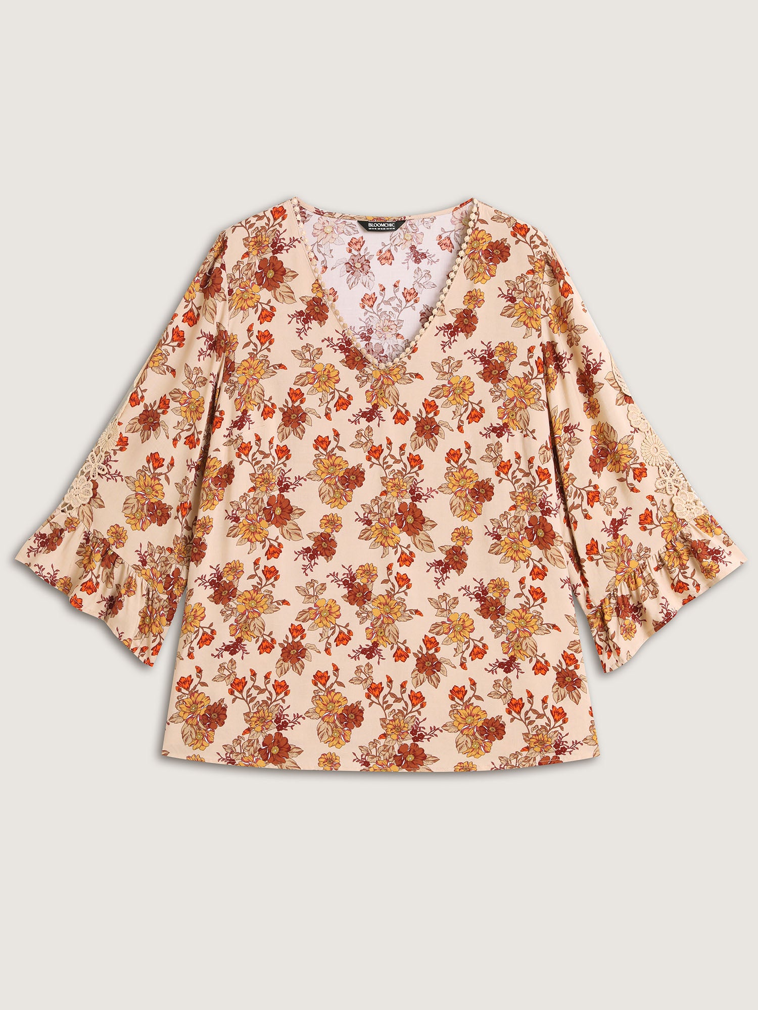 Floral Print Lace V-Neck Blouse