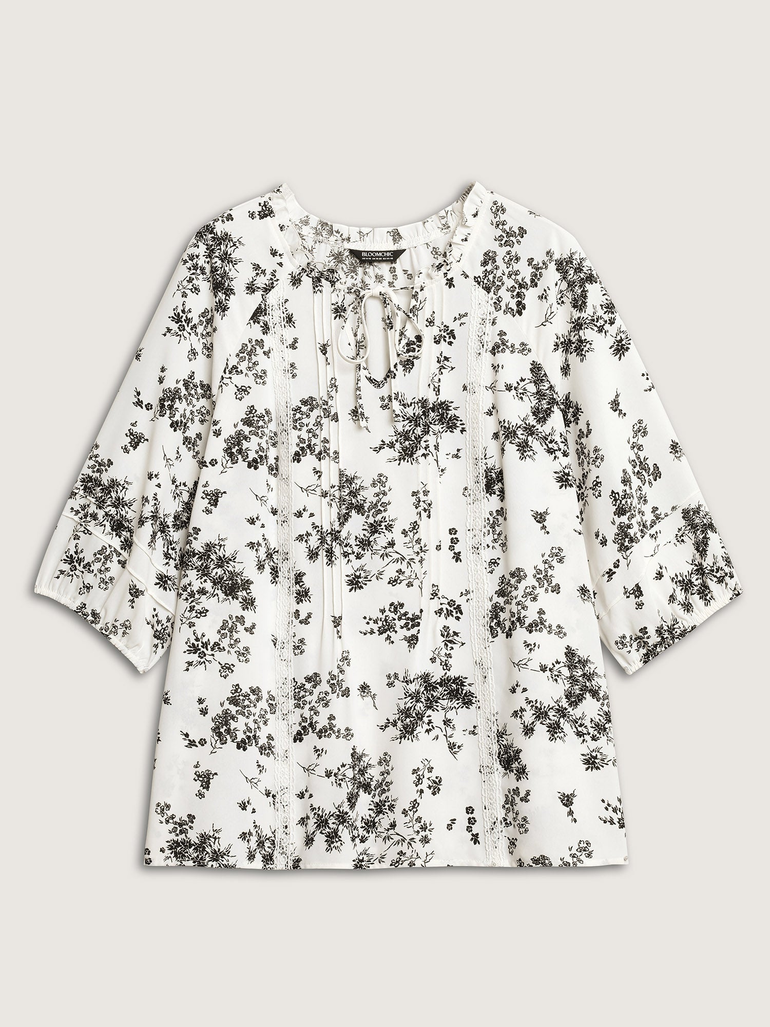 Floral Print Plicated Detail Blouse