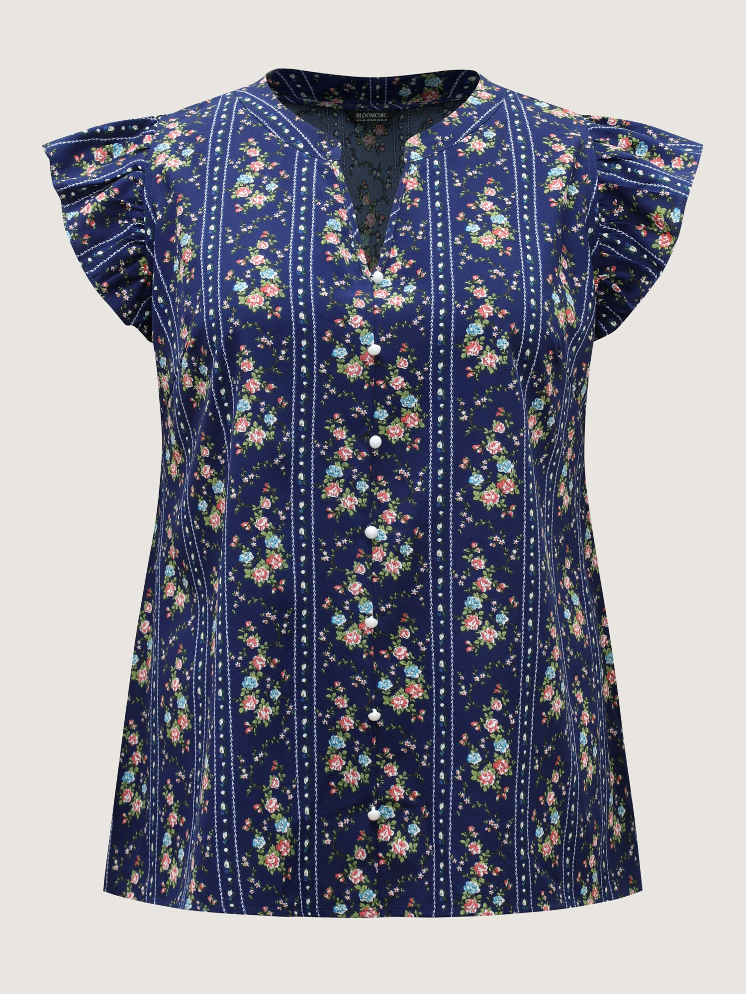 Floral Stripes Flutter Sleeve Blouse