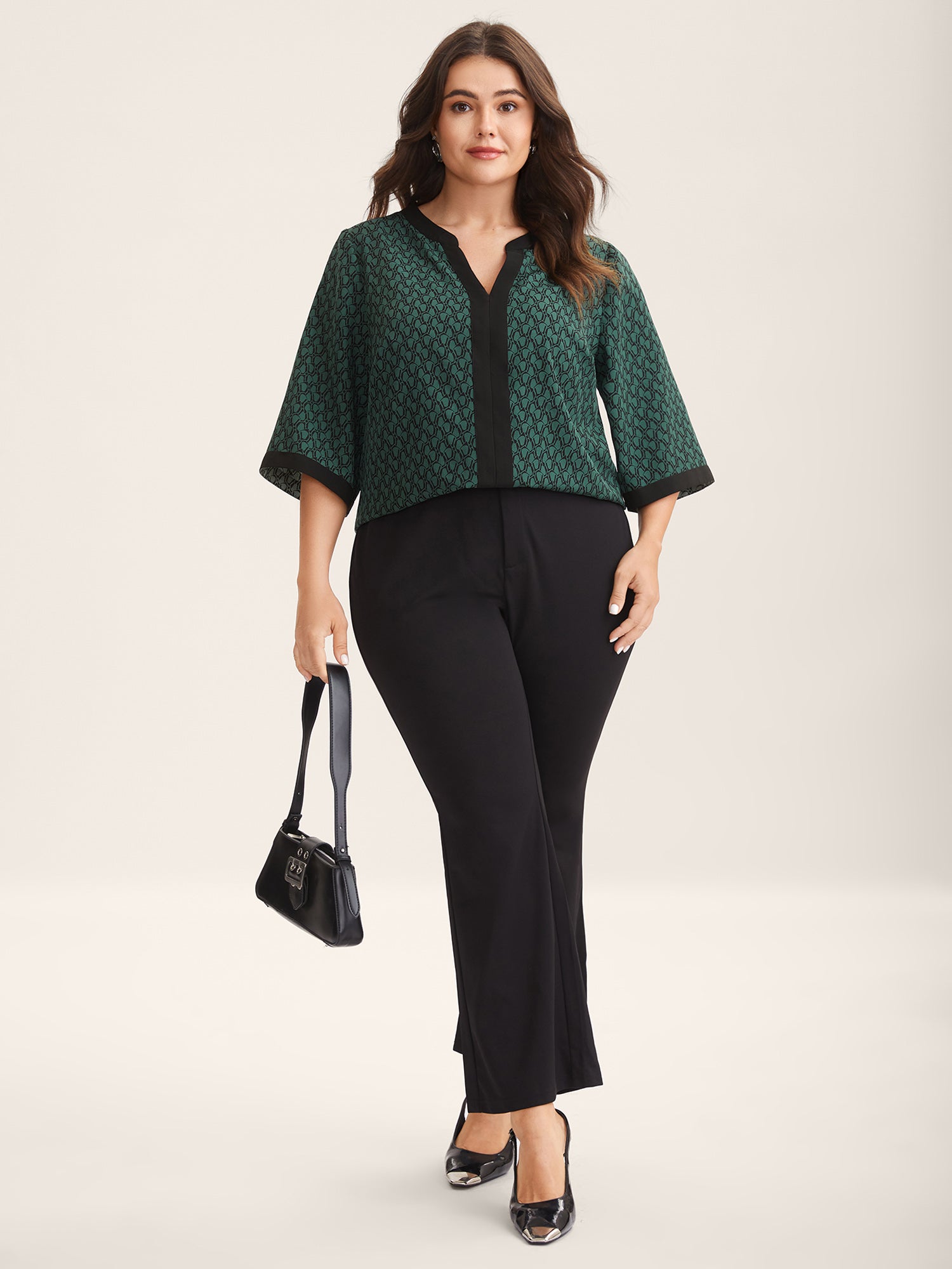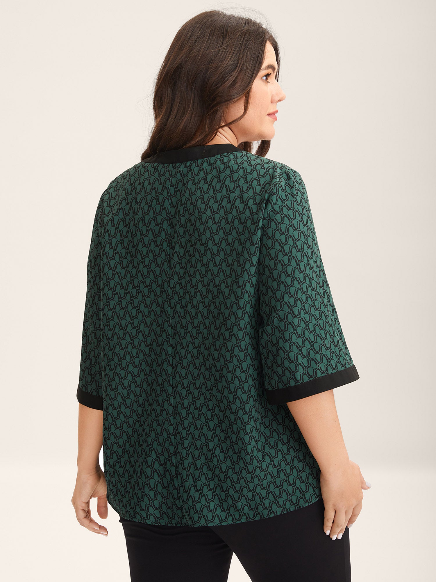 Geometric Print Color Contrast Blouse