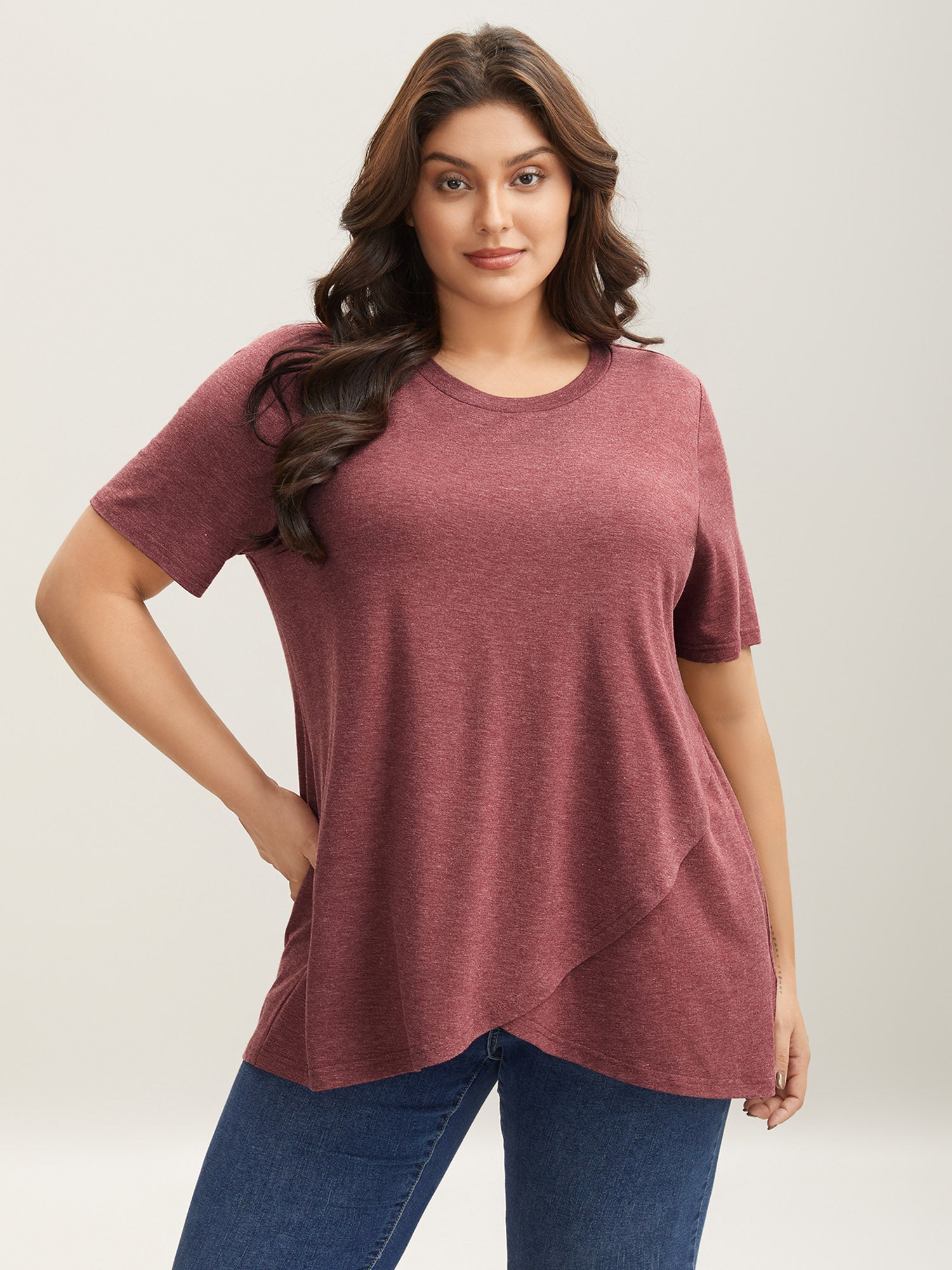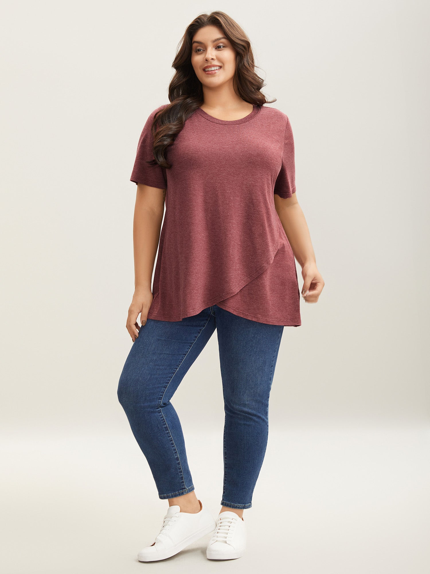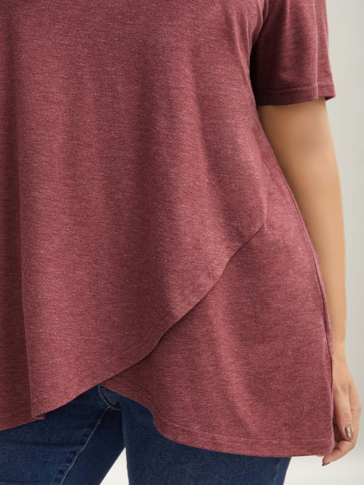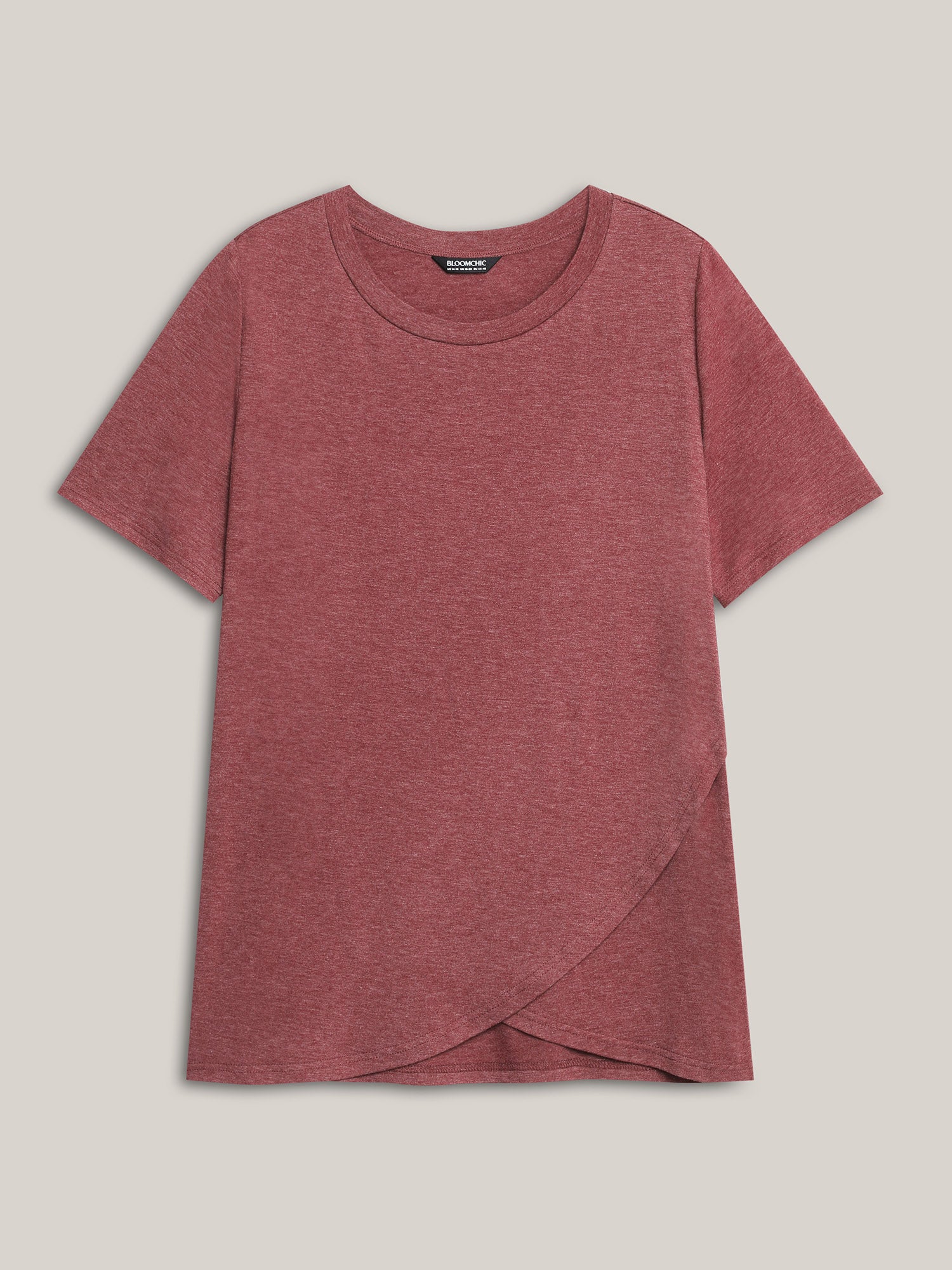 Heather Stretchy Overlap Hem Plain T-Shirt