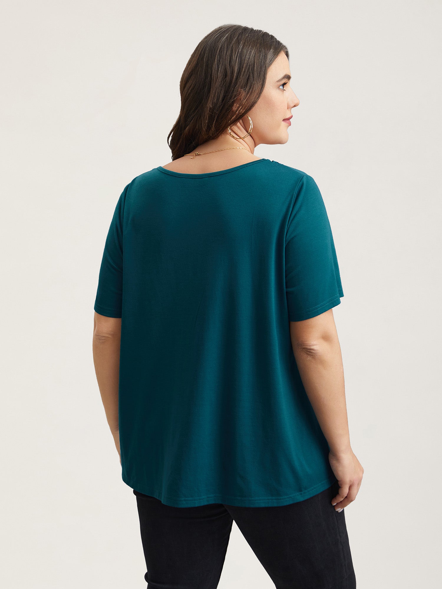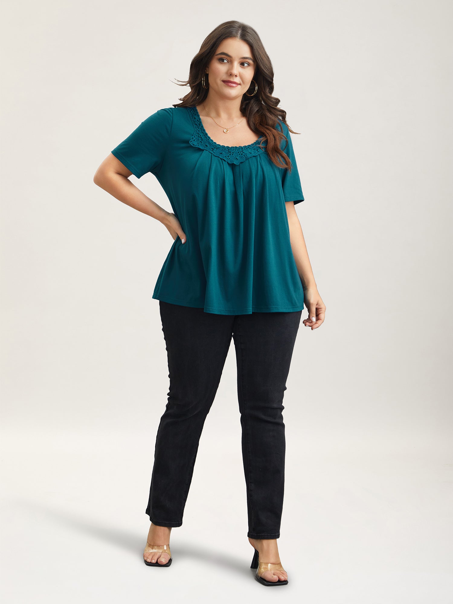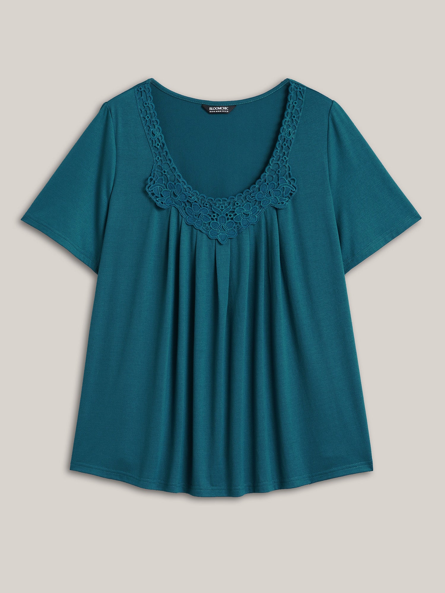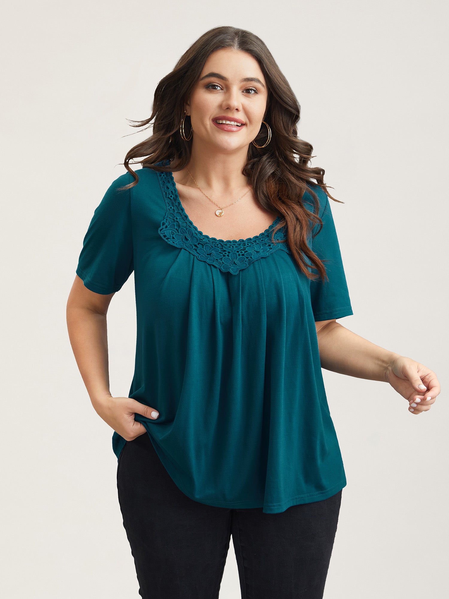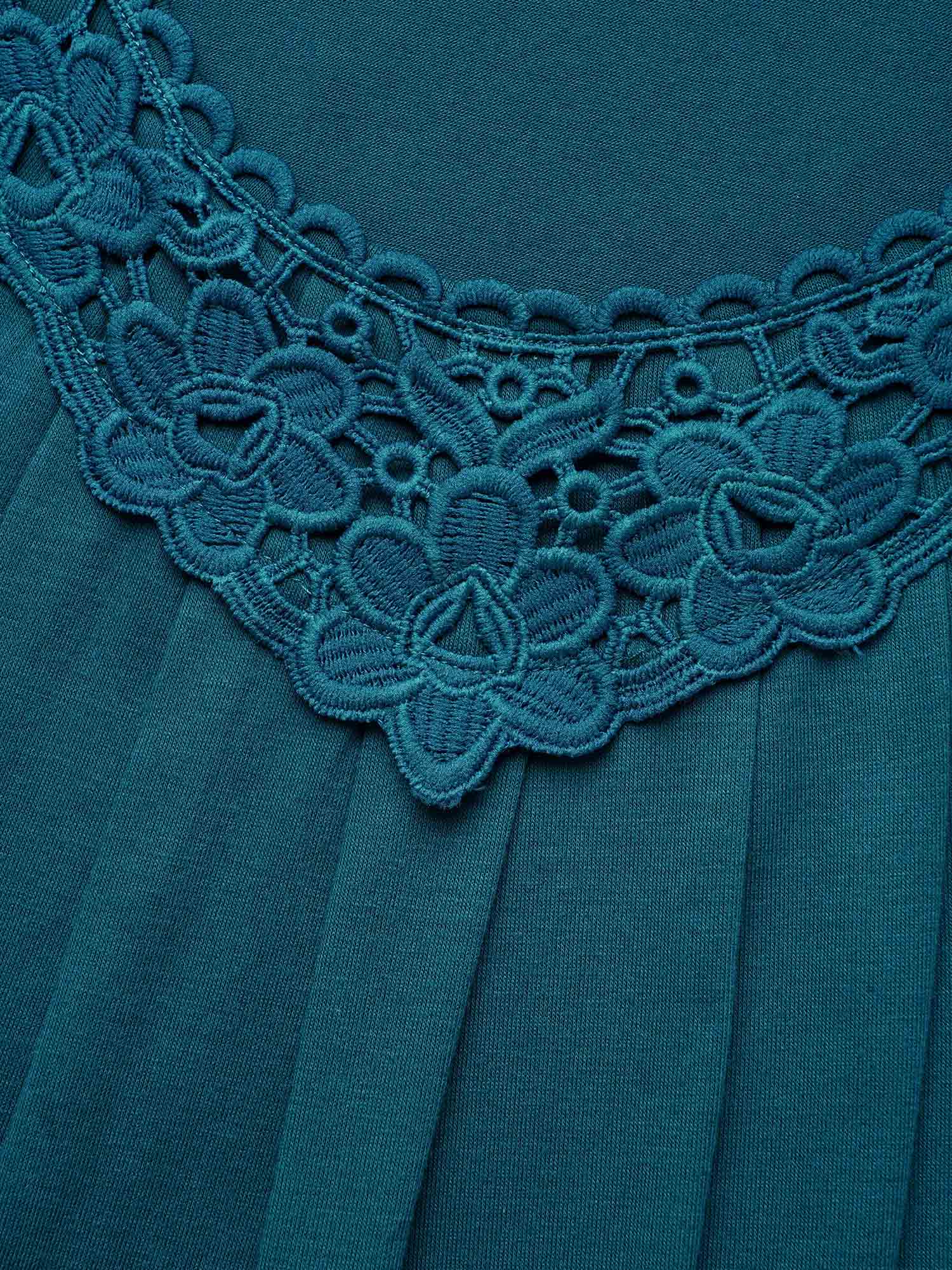 Lace Trim Pleated Round Neck T-Shirt