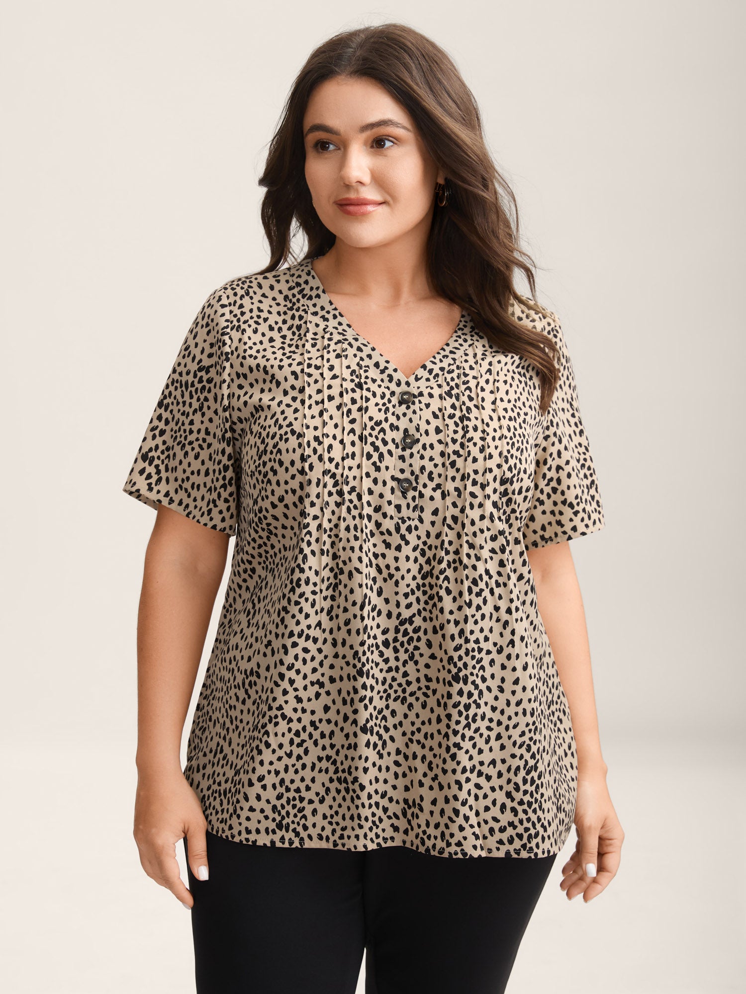 Leopard Print Toothpick Pleat Blouse