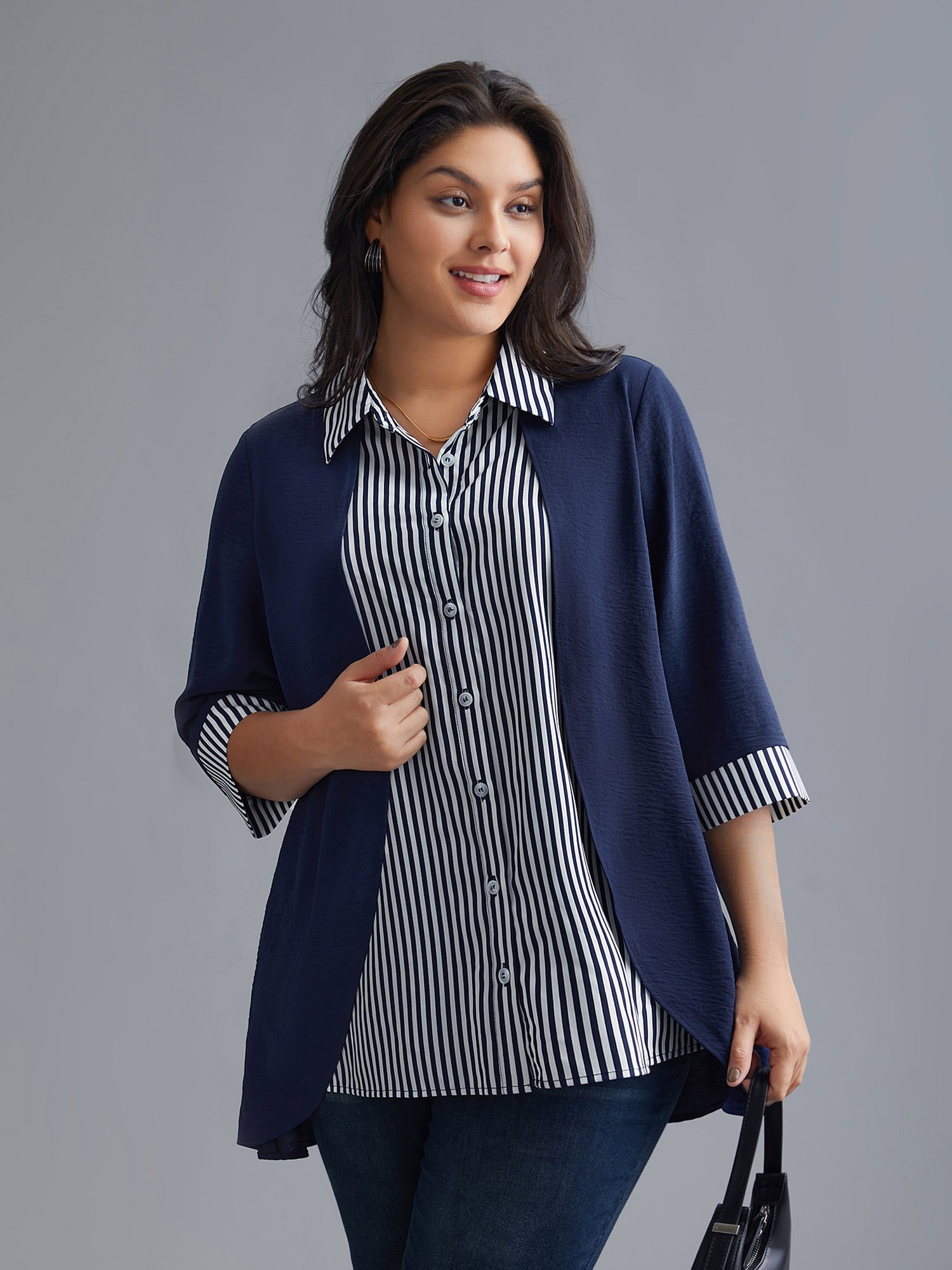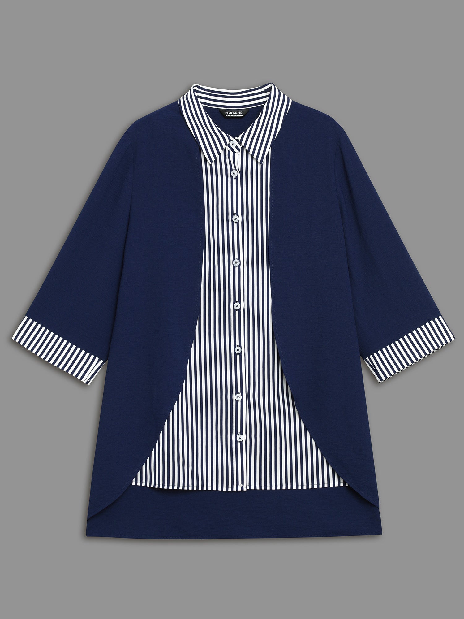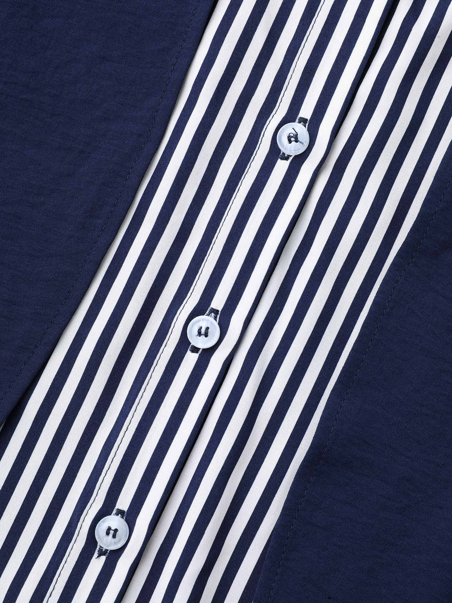 Shirt Collar Patchwork Striped Blouse