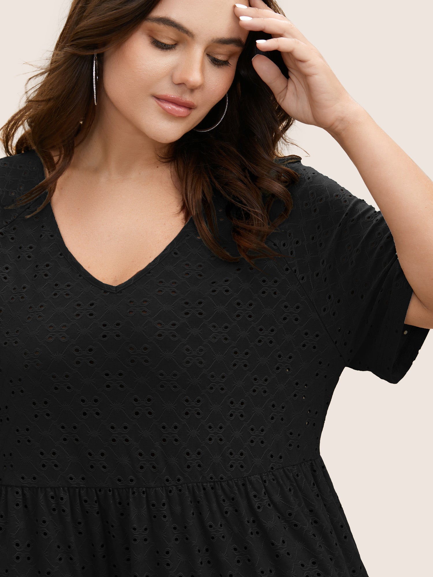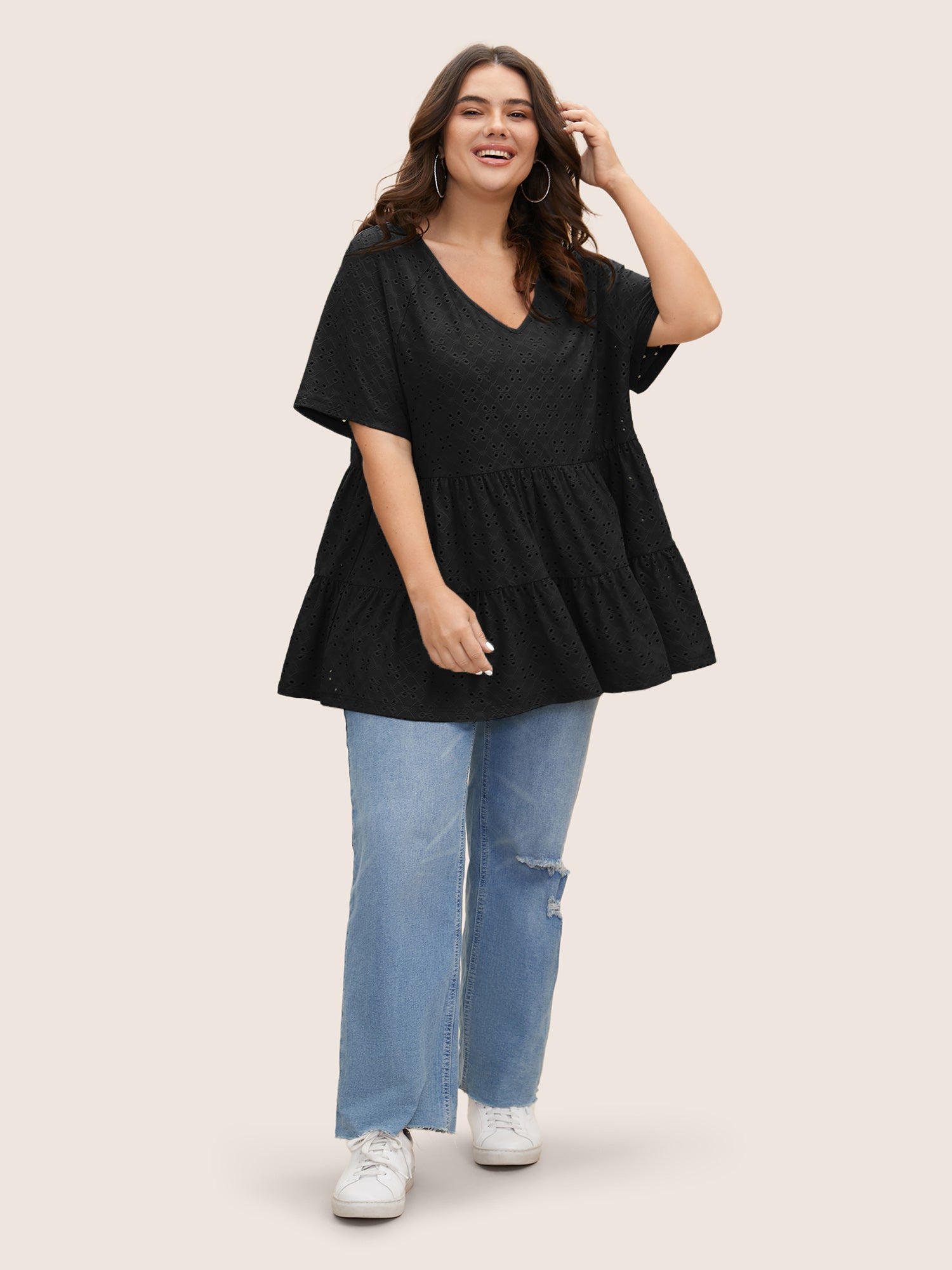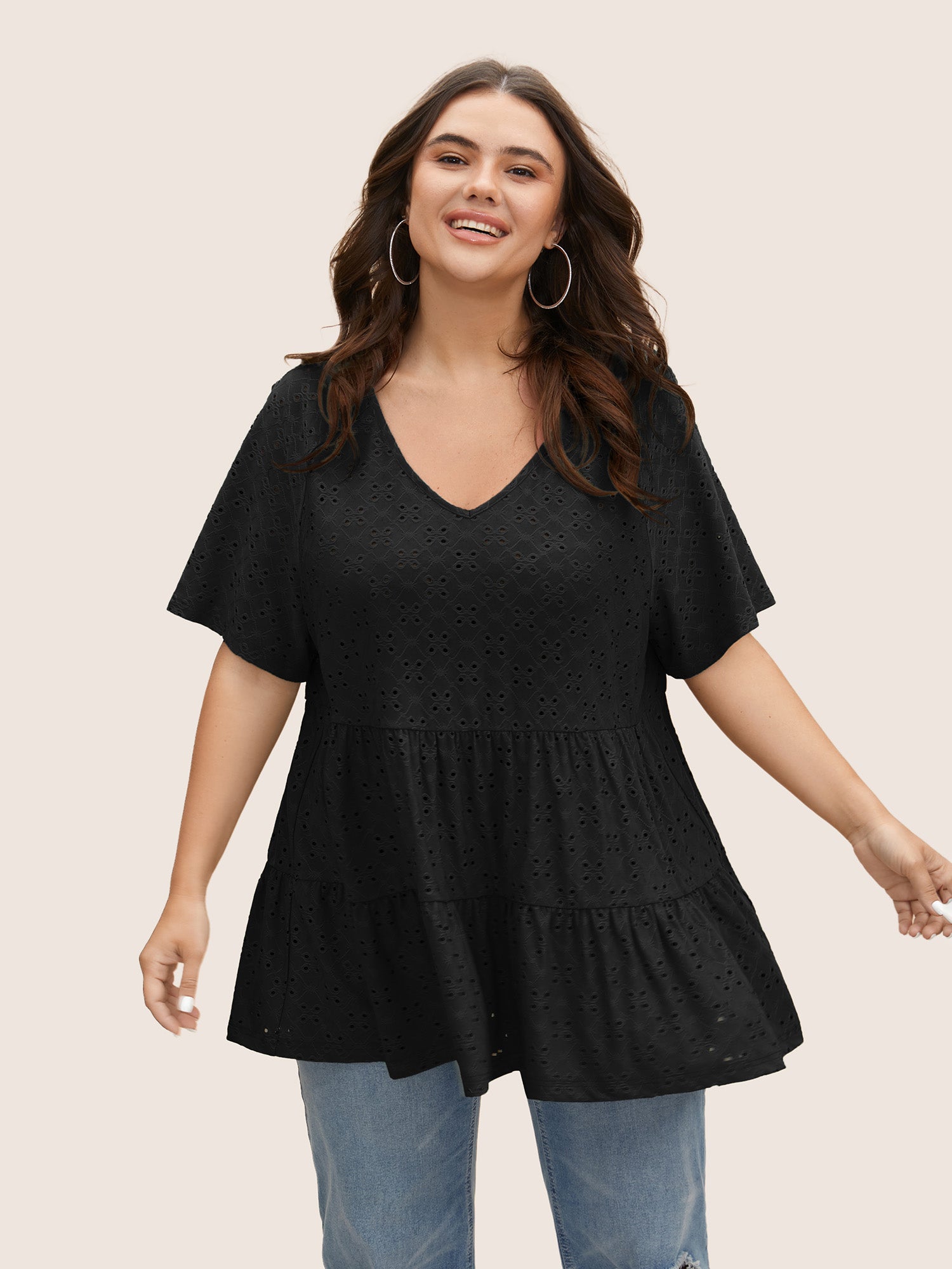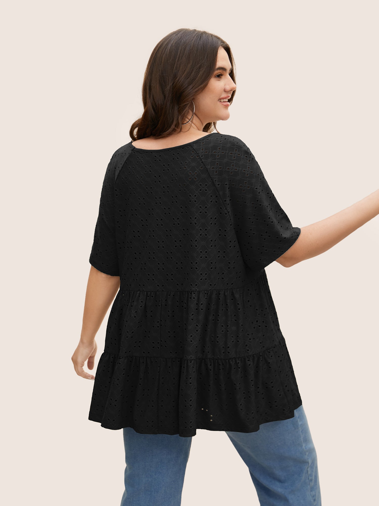 Solid Broderie Anglaise Ruffle Layered Hem T-shirt