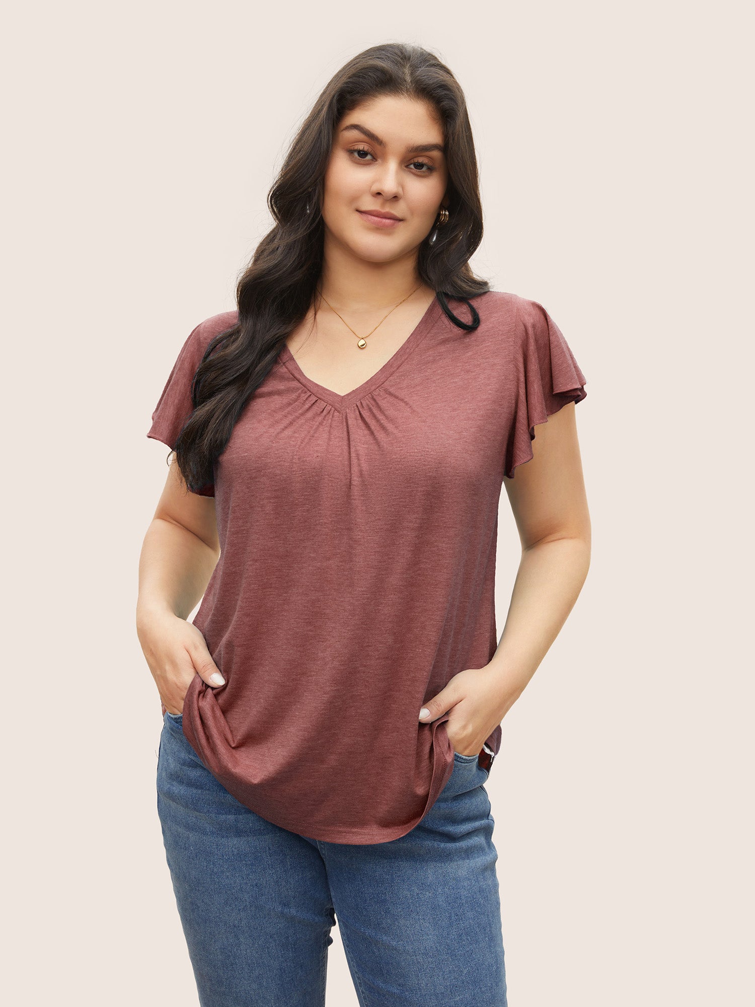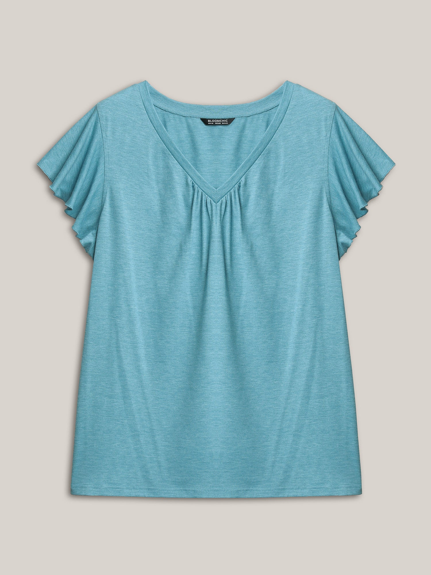 Solid Heather Gathered Ruffle Sleeve T-shirt