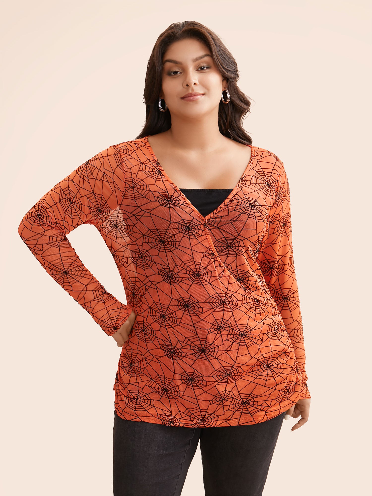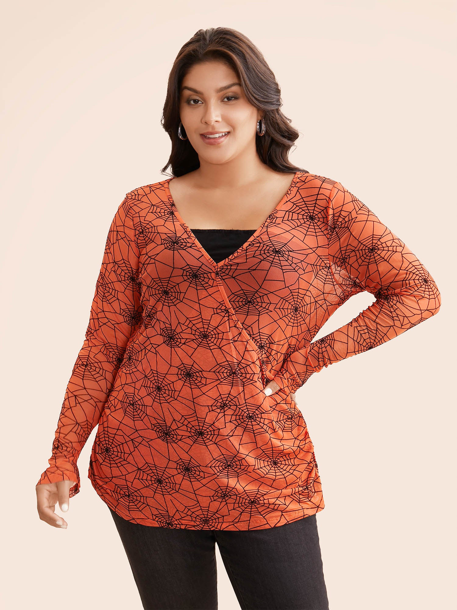 Spider Web Mesh V-Neck T-shirt