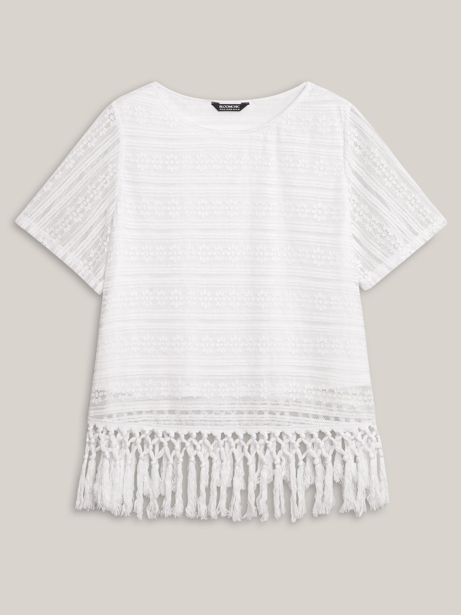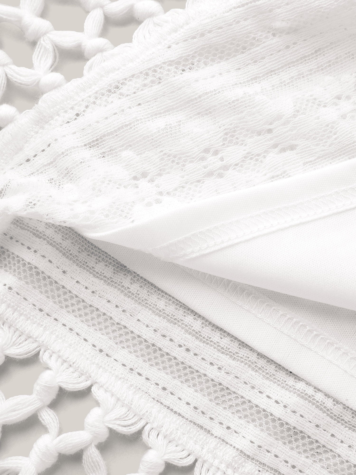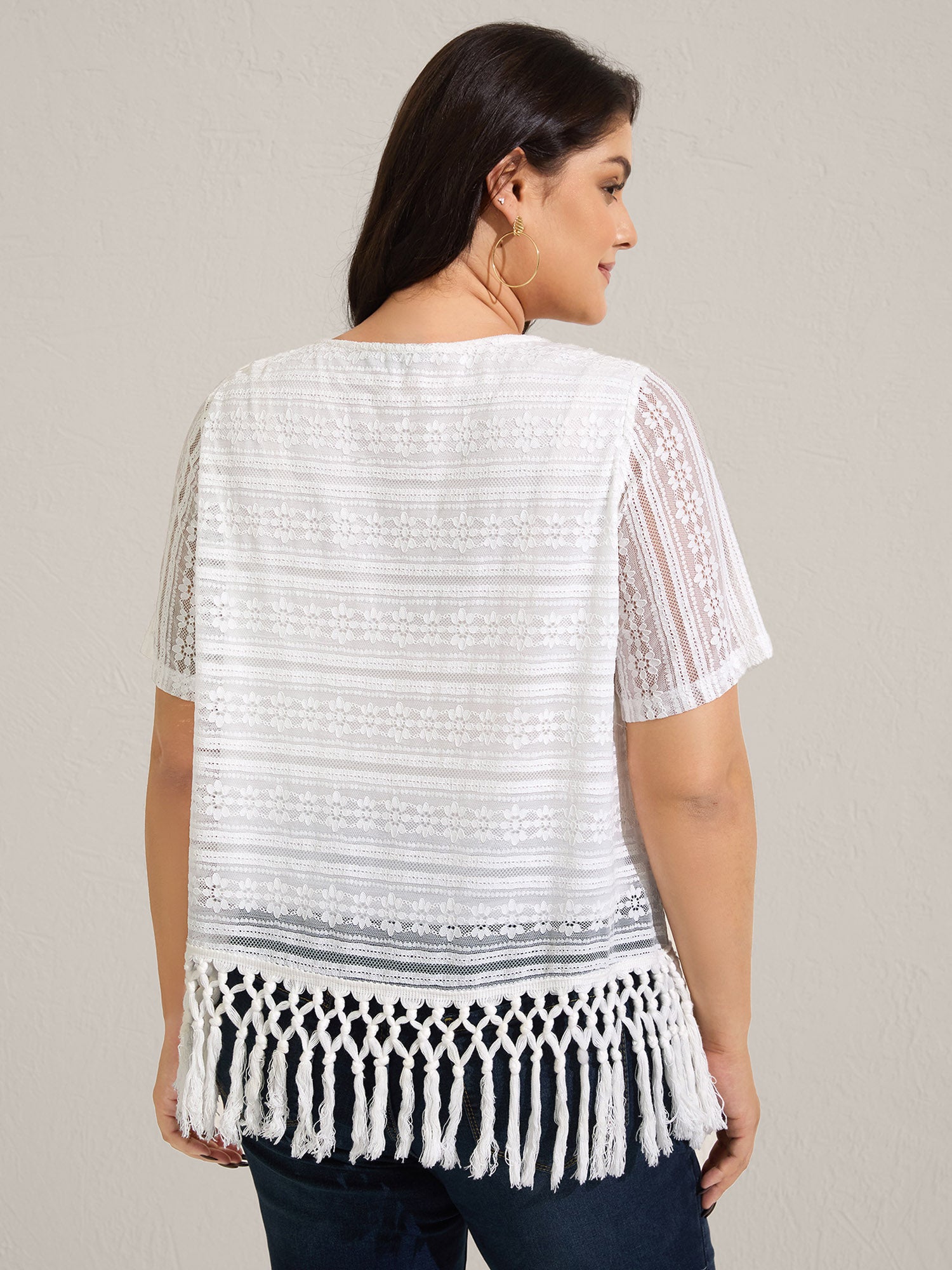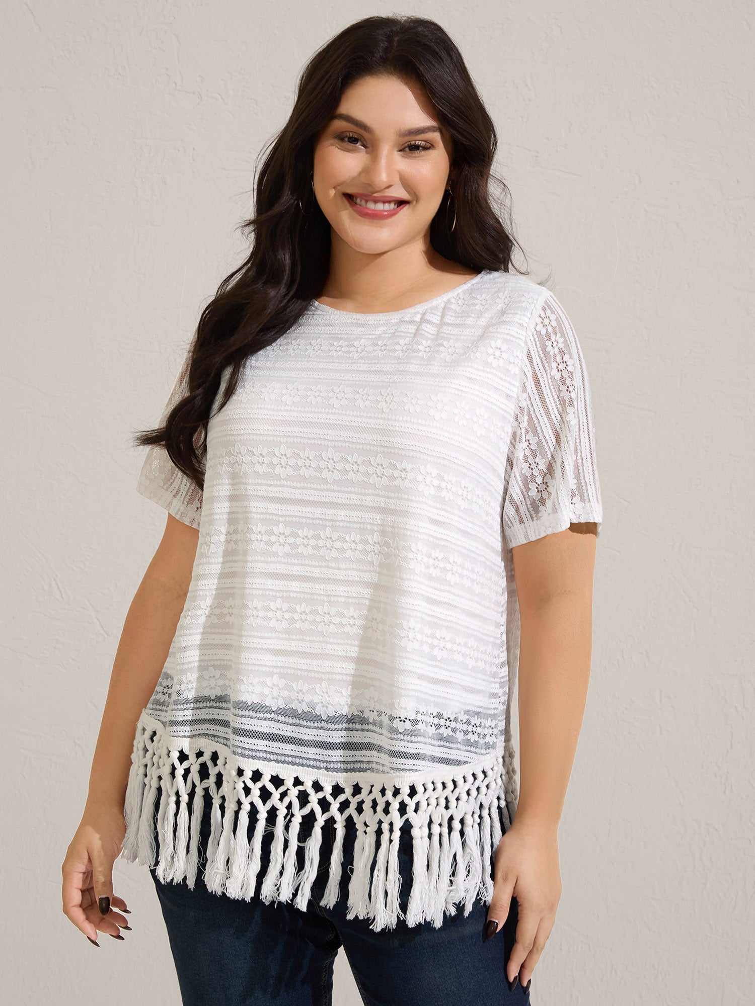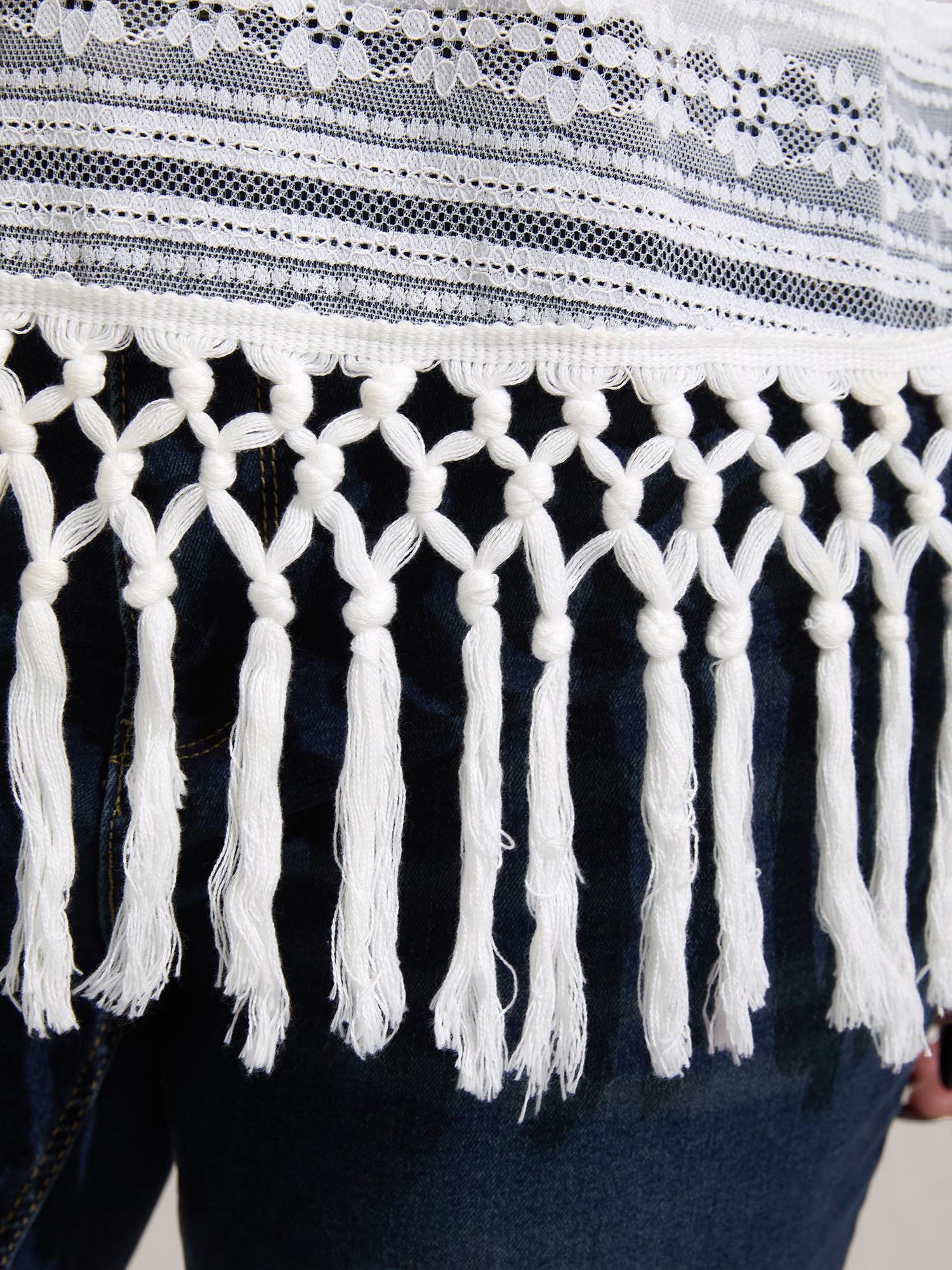Stretchy Lace Tassel Hem Solid Top