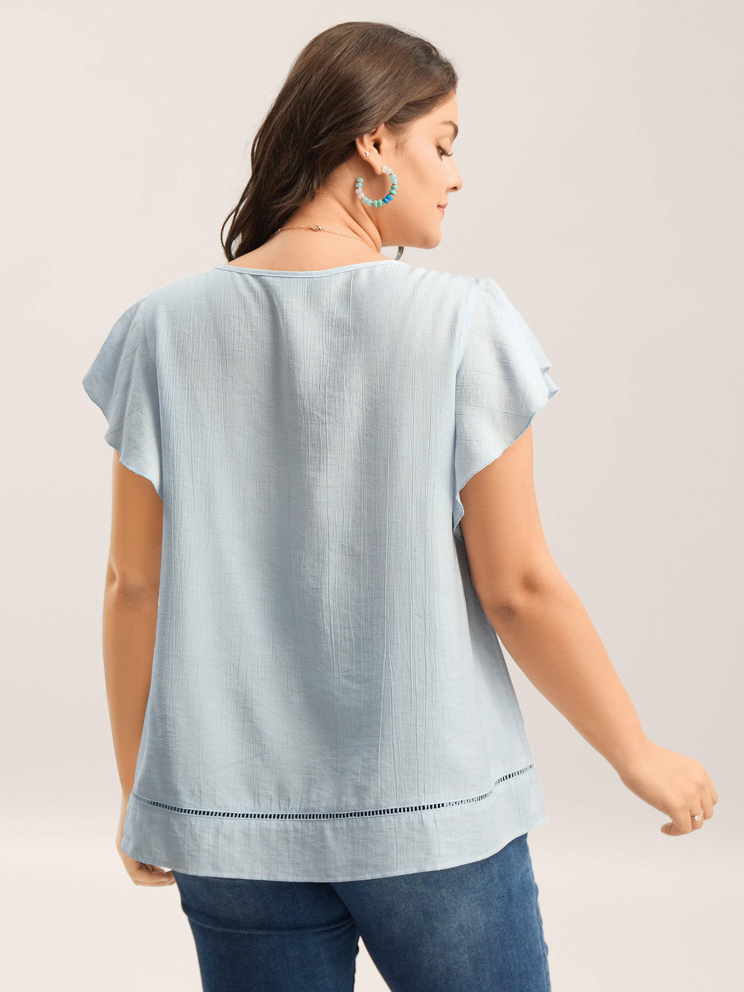 Supersoft Cotton Linen Blend Ruffled Blouse