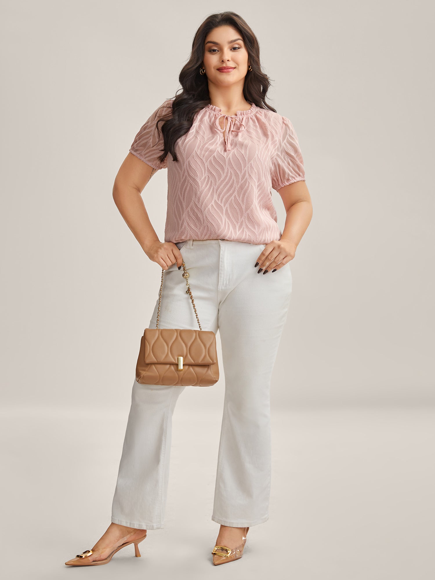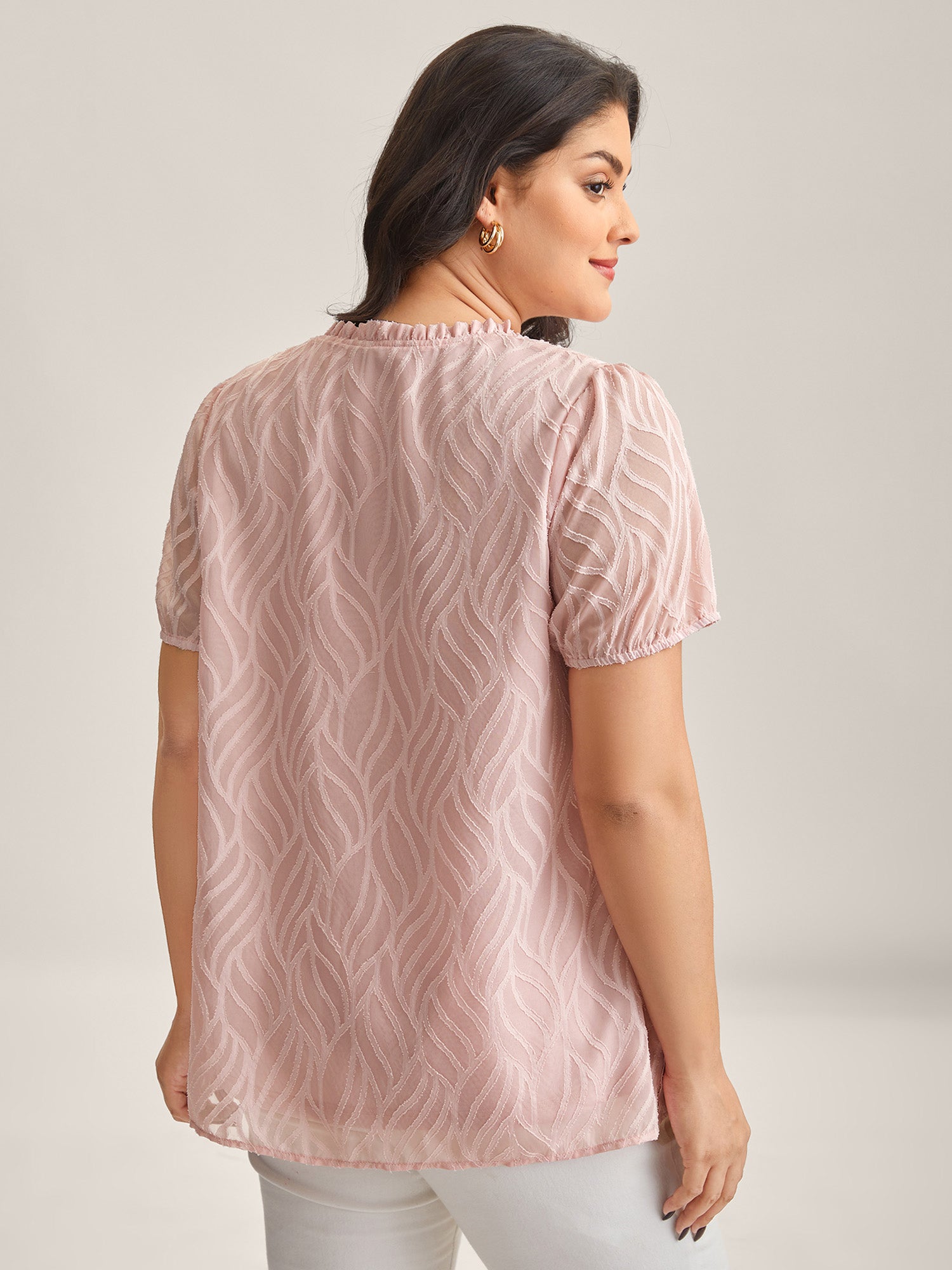 Textured Ruffled Neck A-Line Blouse