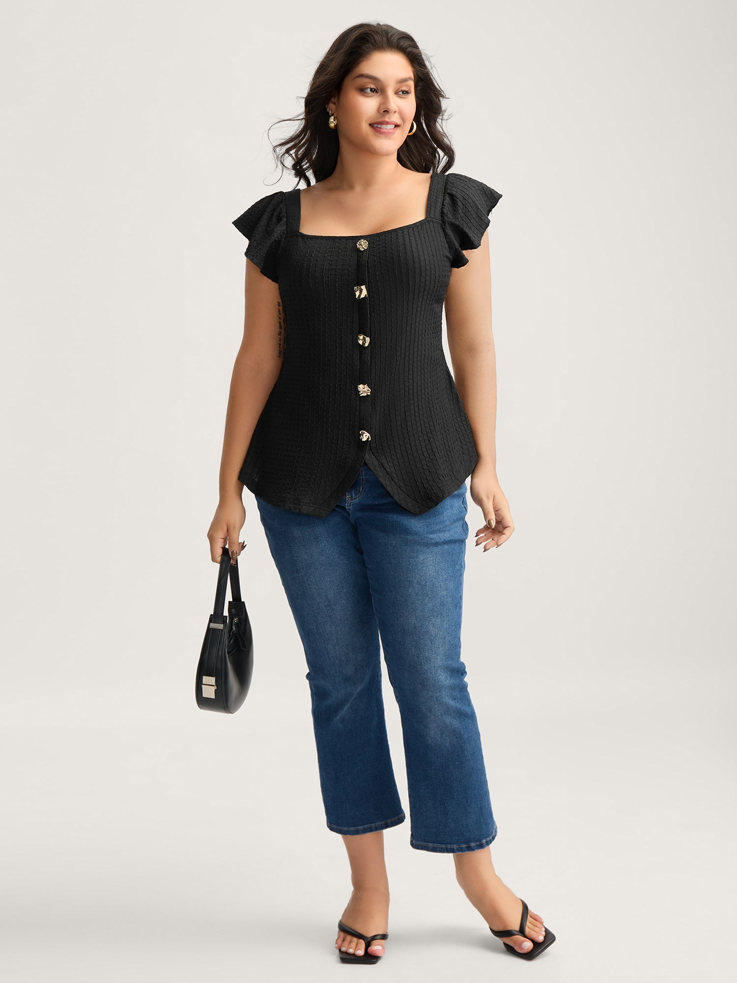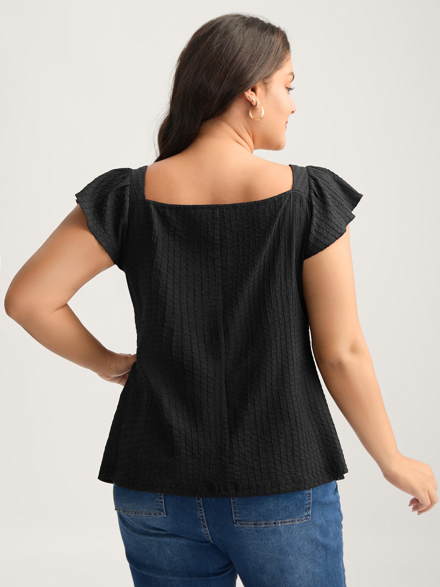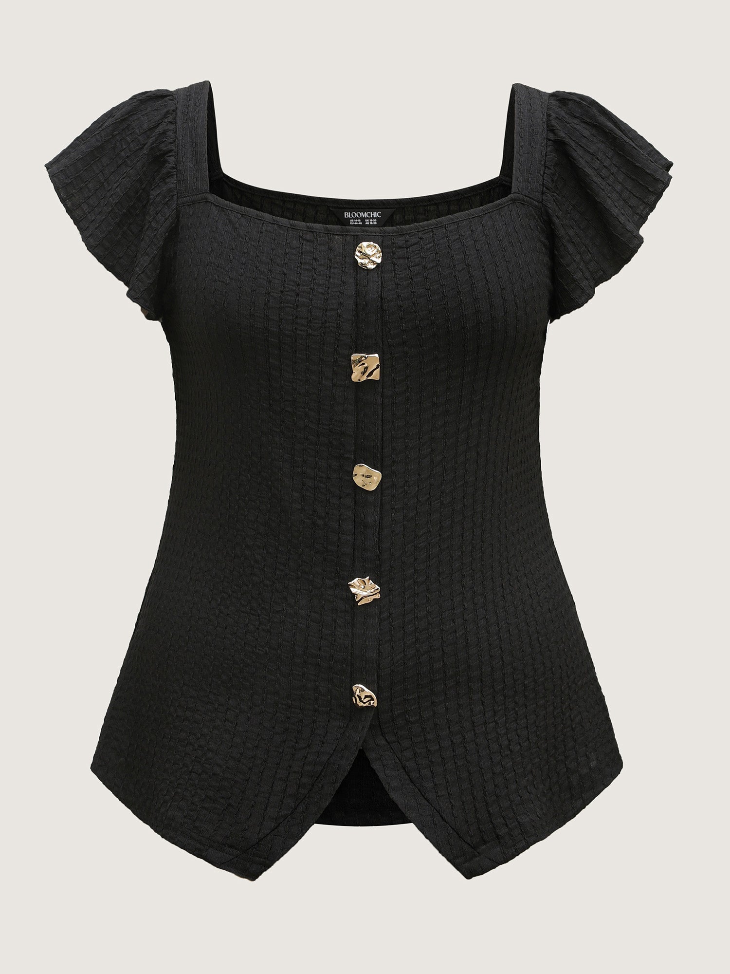 Textured Shape Button Flutter Sleeve Blouse