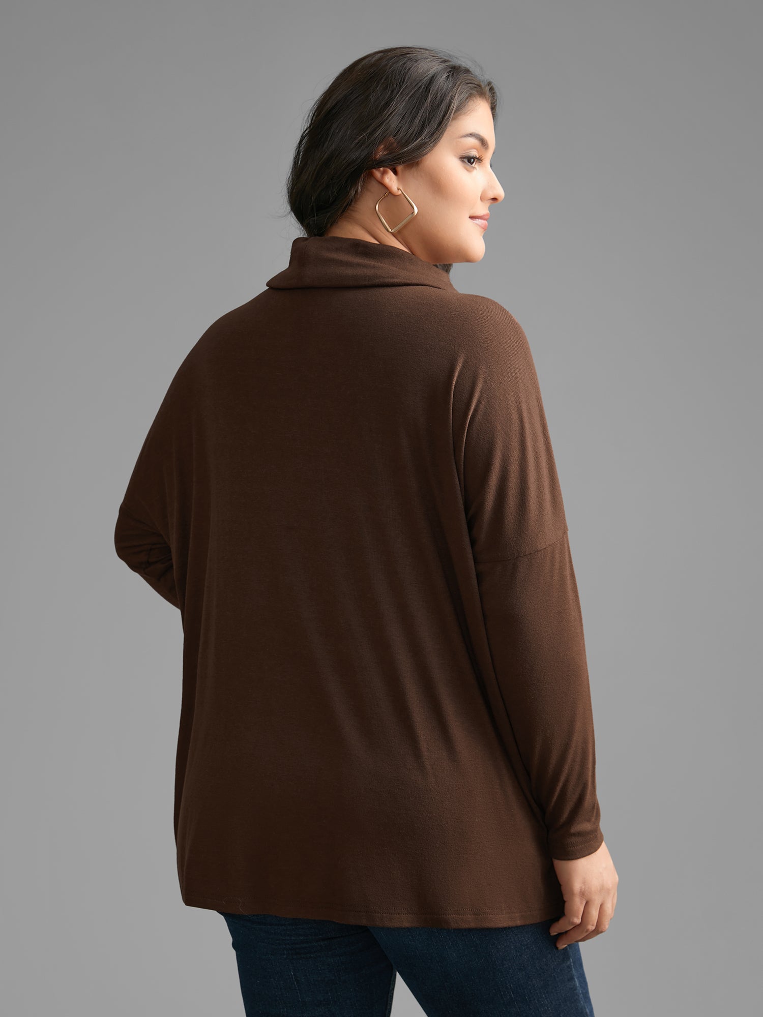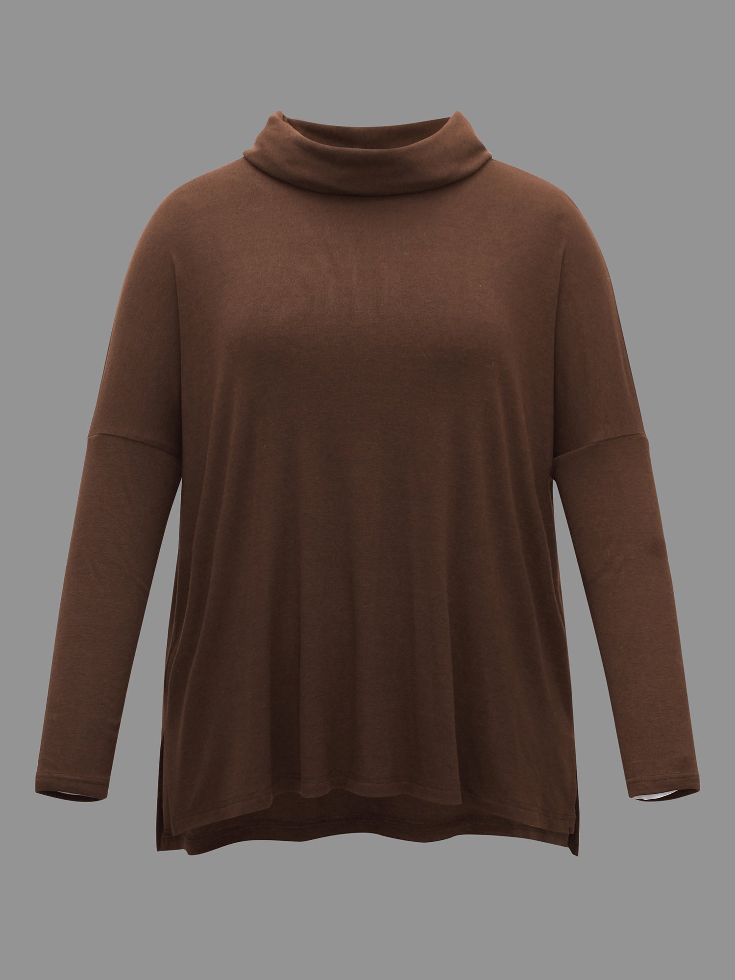 Turtleneck Dolman Sleeve Split Hem T-shirt