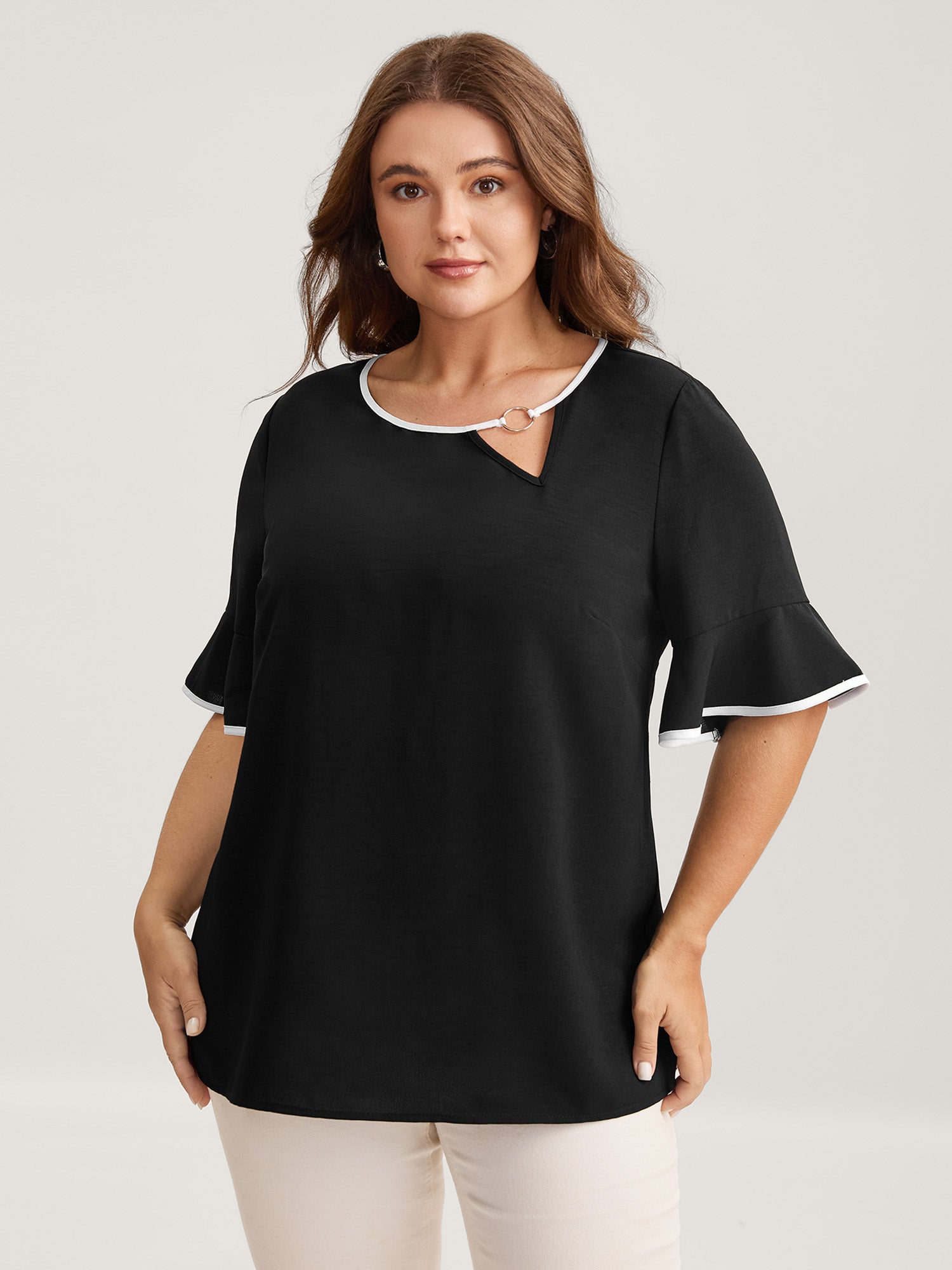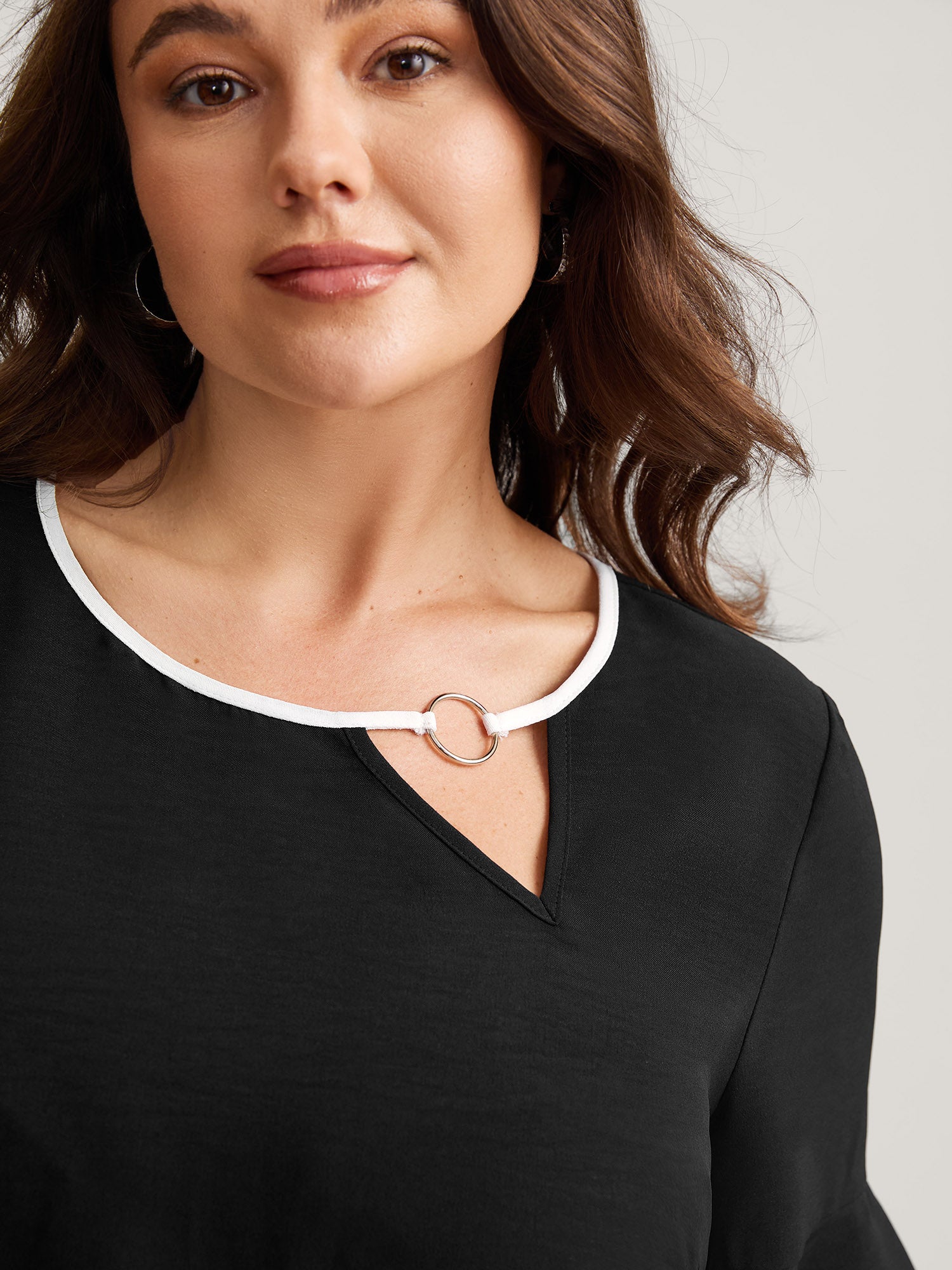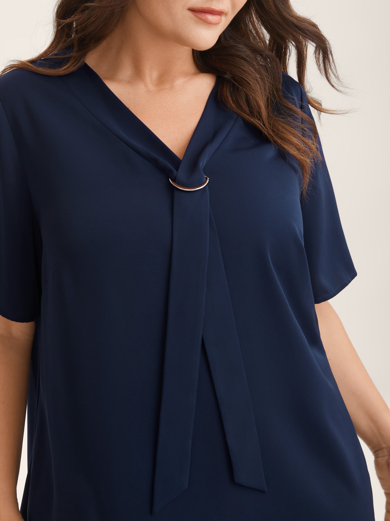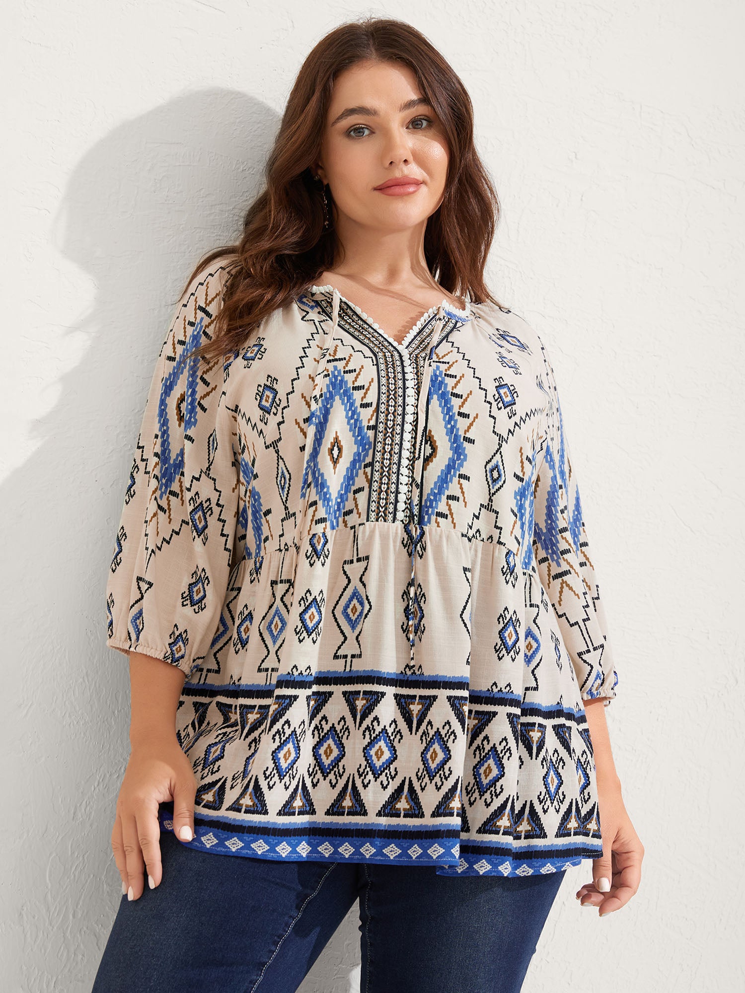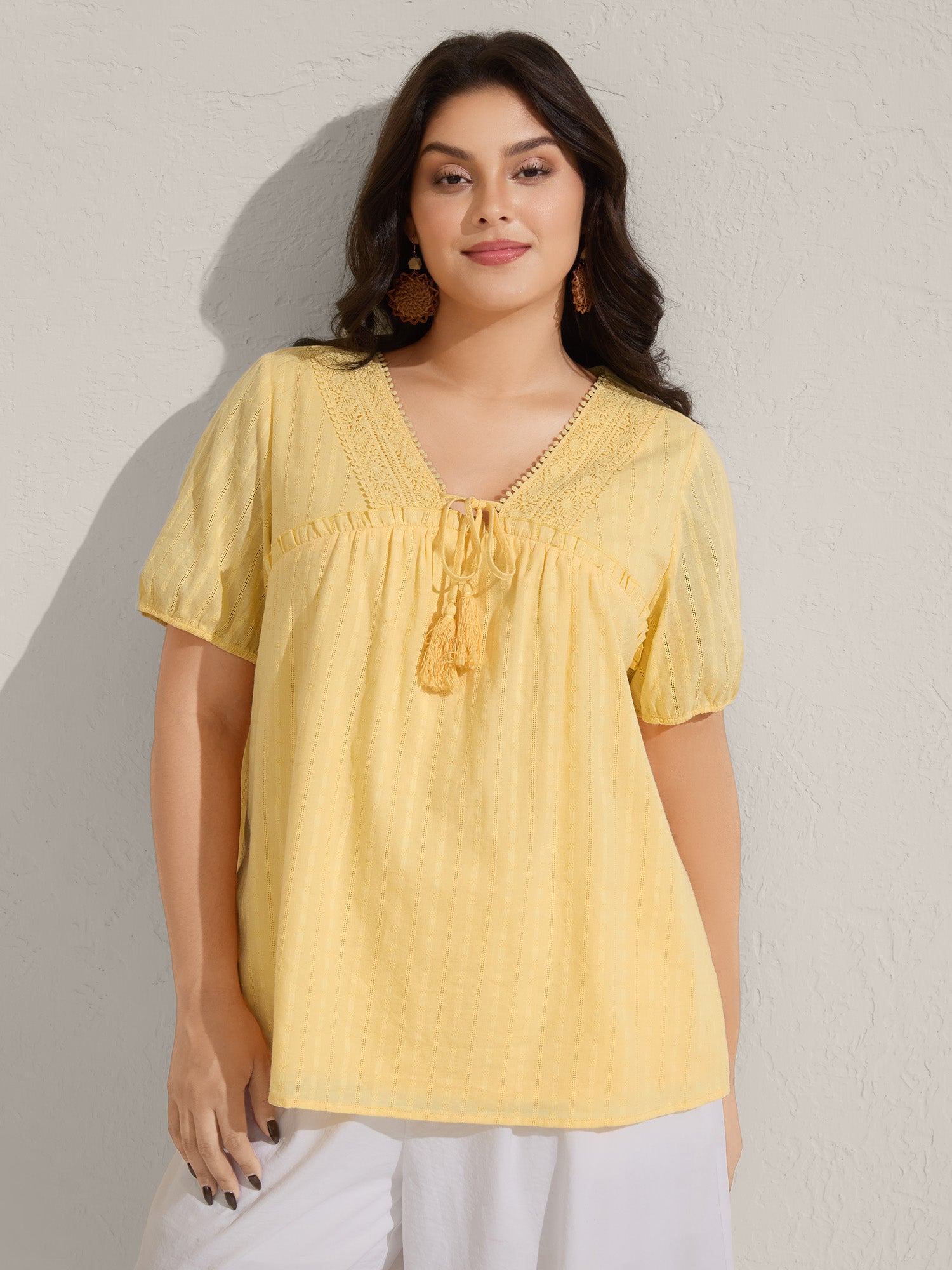 Cotton Textured Lace Trim Neck-Tie Blouse