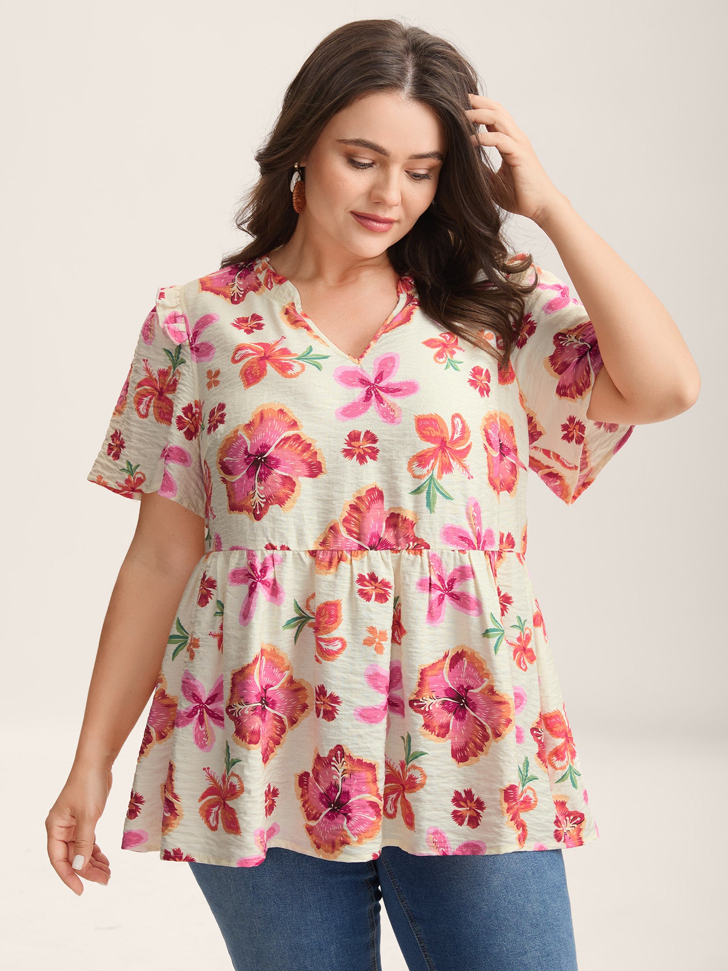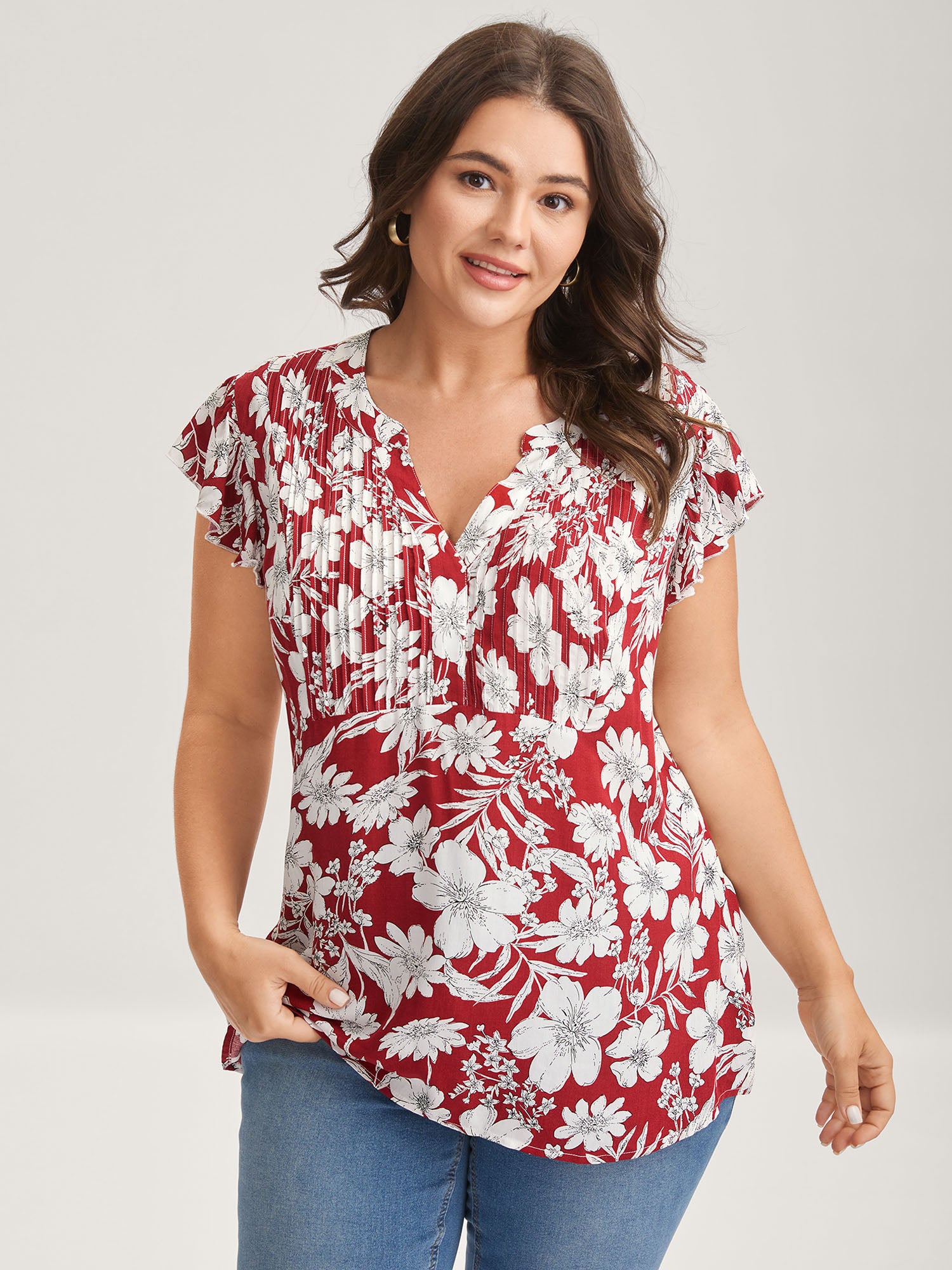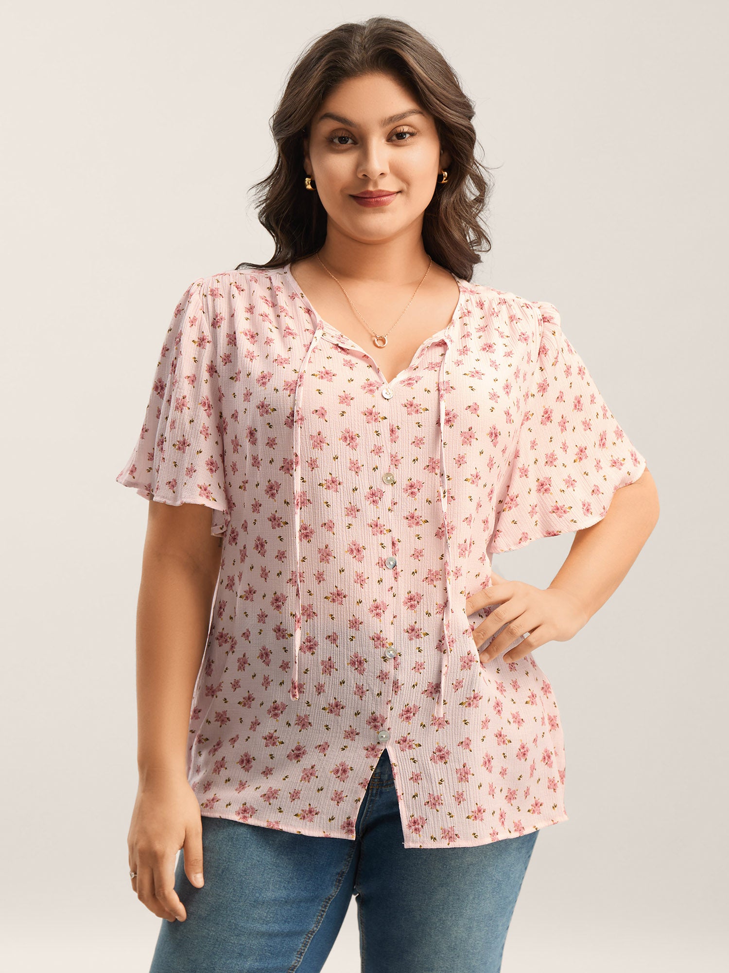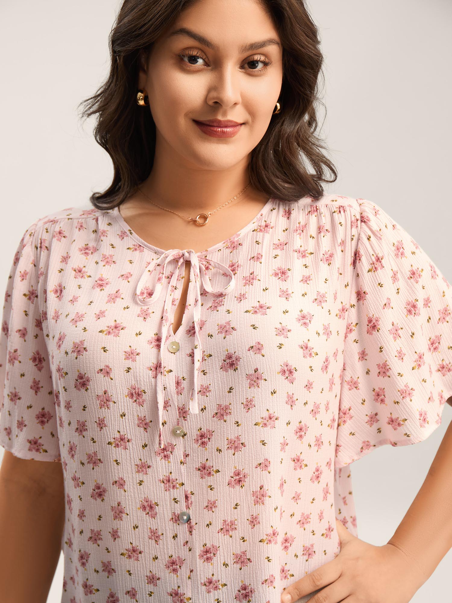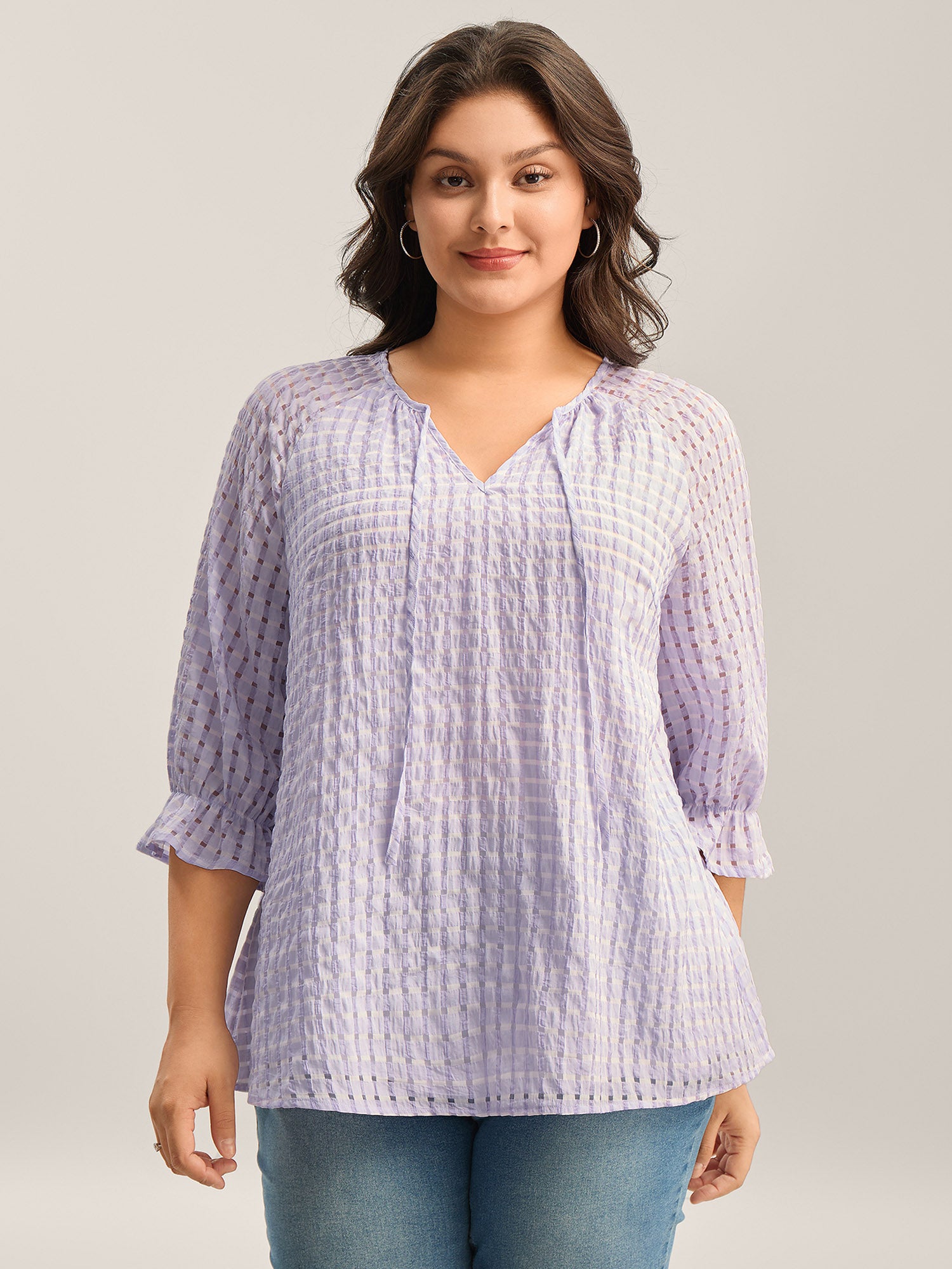 Sweet Gingham Wrinkled Petal Sleeve Blouse