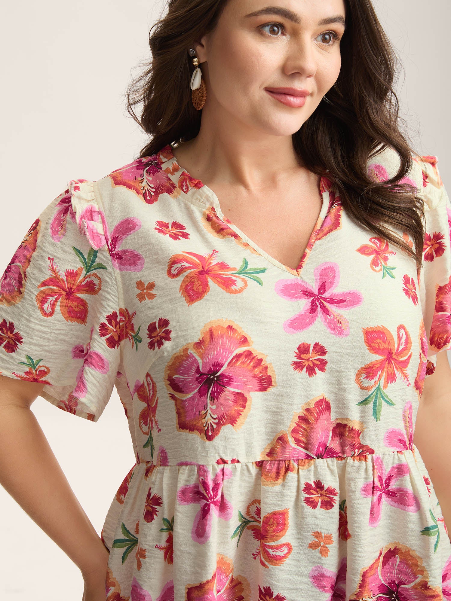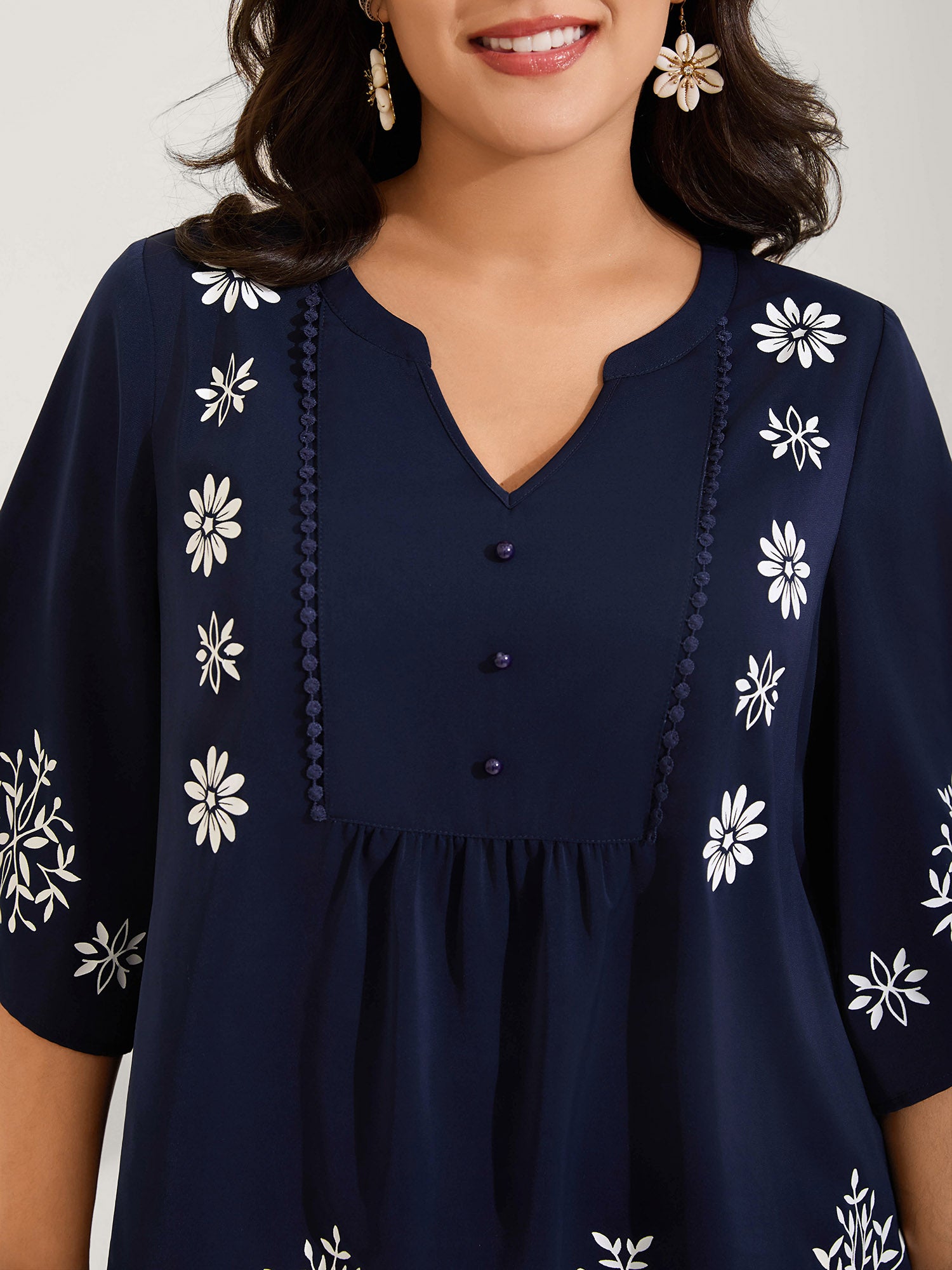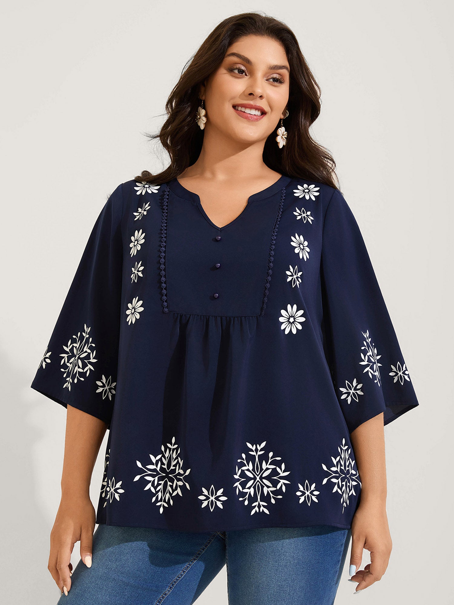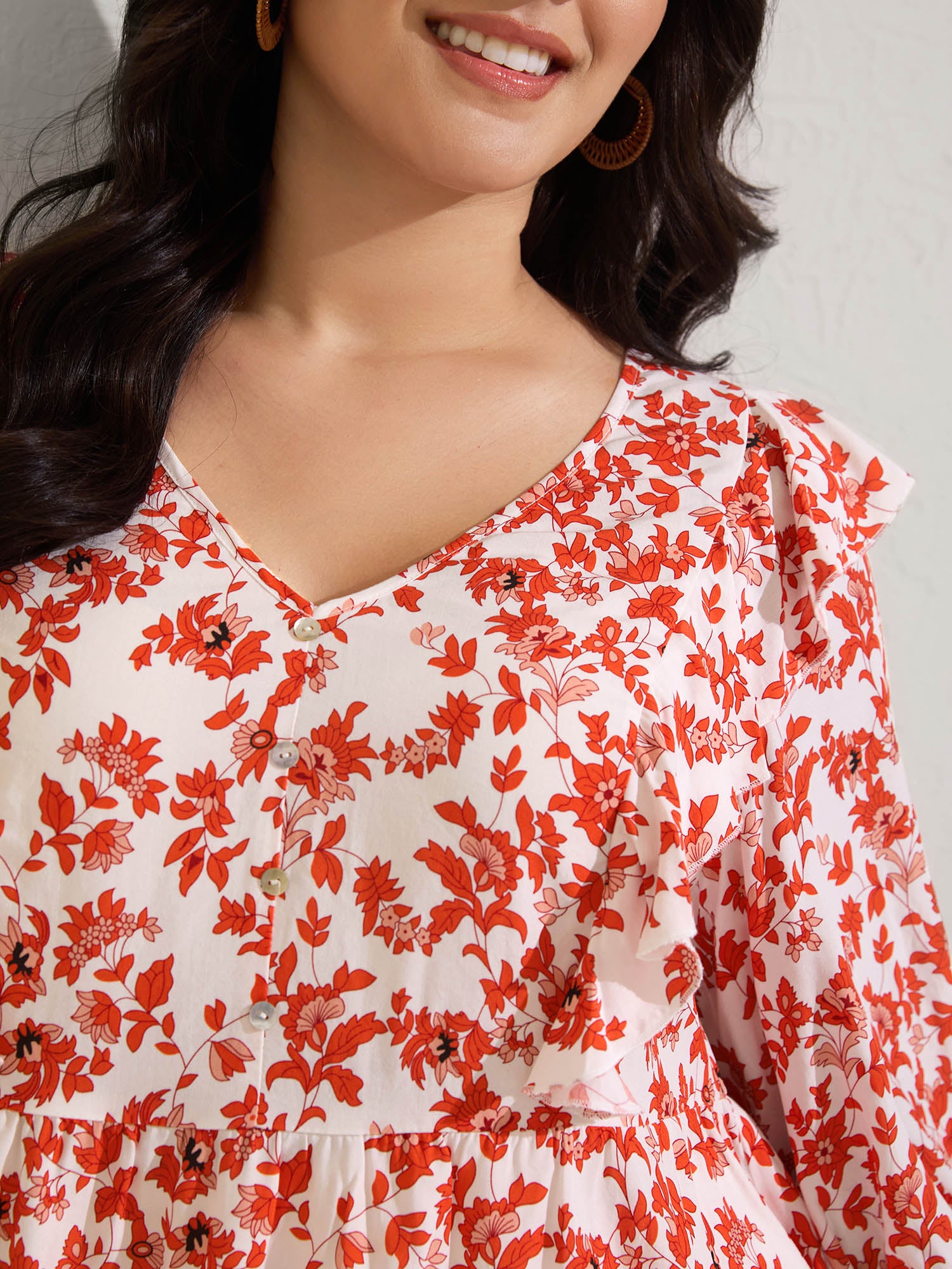 Cotton Cherry Embroidery Ruffled Neck Blouse